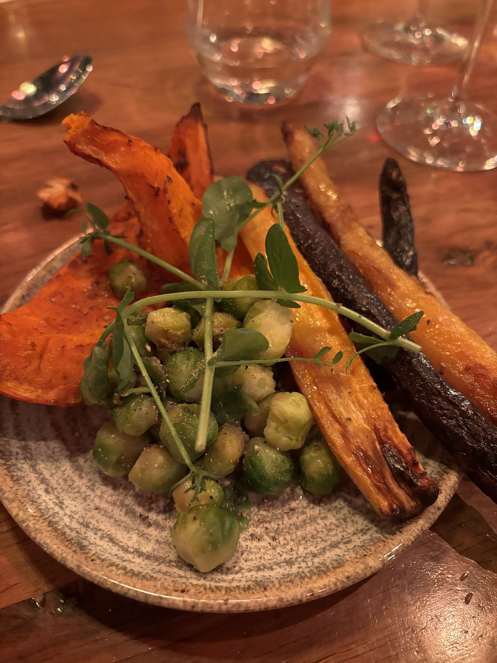 My non vegan family ordered spareribs, but me, my girlfriend and my sister enjoyed the vegan options. As a starter we shared the mushroom soup and the beetroot dish. The soup was good. Nothing special, just what you expect from it. Together with the bread with vegan butter on the side, a comforting dish. The beetroot starter was wonderful, consisting of cooked beetroot accompanied by date confit, orange slices, balsamic syrup, vegan creme freche and sugared walnuts. This dish came together as a whole due to the composition of the separate ingredients. This made up for the fact that the beetroot wasn't brought up to taste itself and, other that the title was suggesting, wasn't the center of the dish.