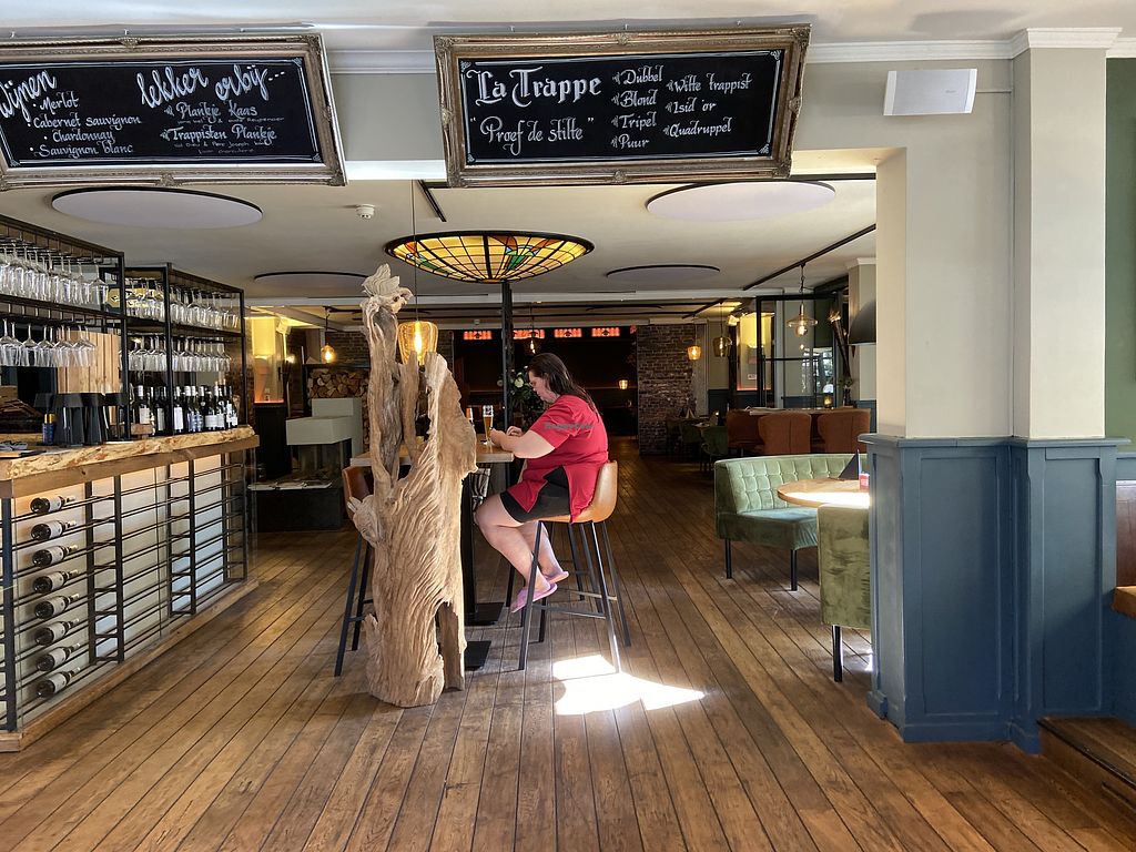 Er zijn veel vegan opties op de kaart, of vega die ook vegan kunnen. Ook aanpassingen waren geen enkel probleem, super fijn! Ik vond de uiensoep, de raddichiosalade en de oesterzwamkroket heerlijk! Ik had nog wel veel meer willen proberen, zoals de aardappels met rozemarijn, seizoensgroenten, friet in schil, kofte, de vegan burger, het broodje humus met aubergine. De bediening was heel vriendelijk. Er is een serre, een sfeervolle binnenruimte (ik dacht met haardvuur) en een groot terras met banken met kussens en goede stoelen, genoeg parasols en ook zon. Ik kom hier zeker nog eens terug!