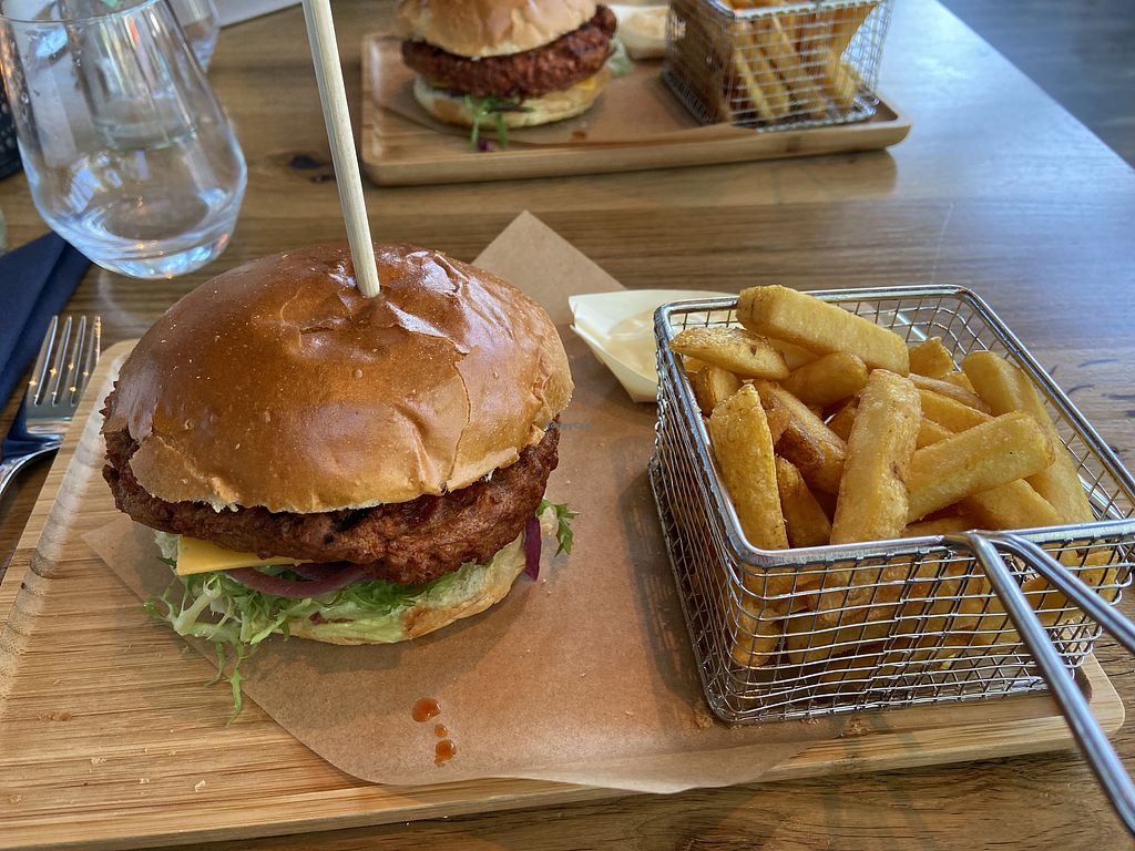 Read moreWe tried the Green chef burger which can be completely veganized when requested (with vegan cheddar). It was large and tasty, but quite salty. The fries were good and they came with vegan mayo. We also had a vegan appetizer: bread sticks with tomato tapenade.