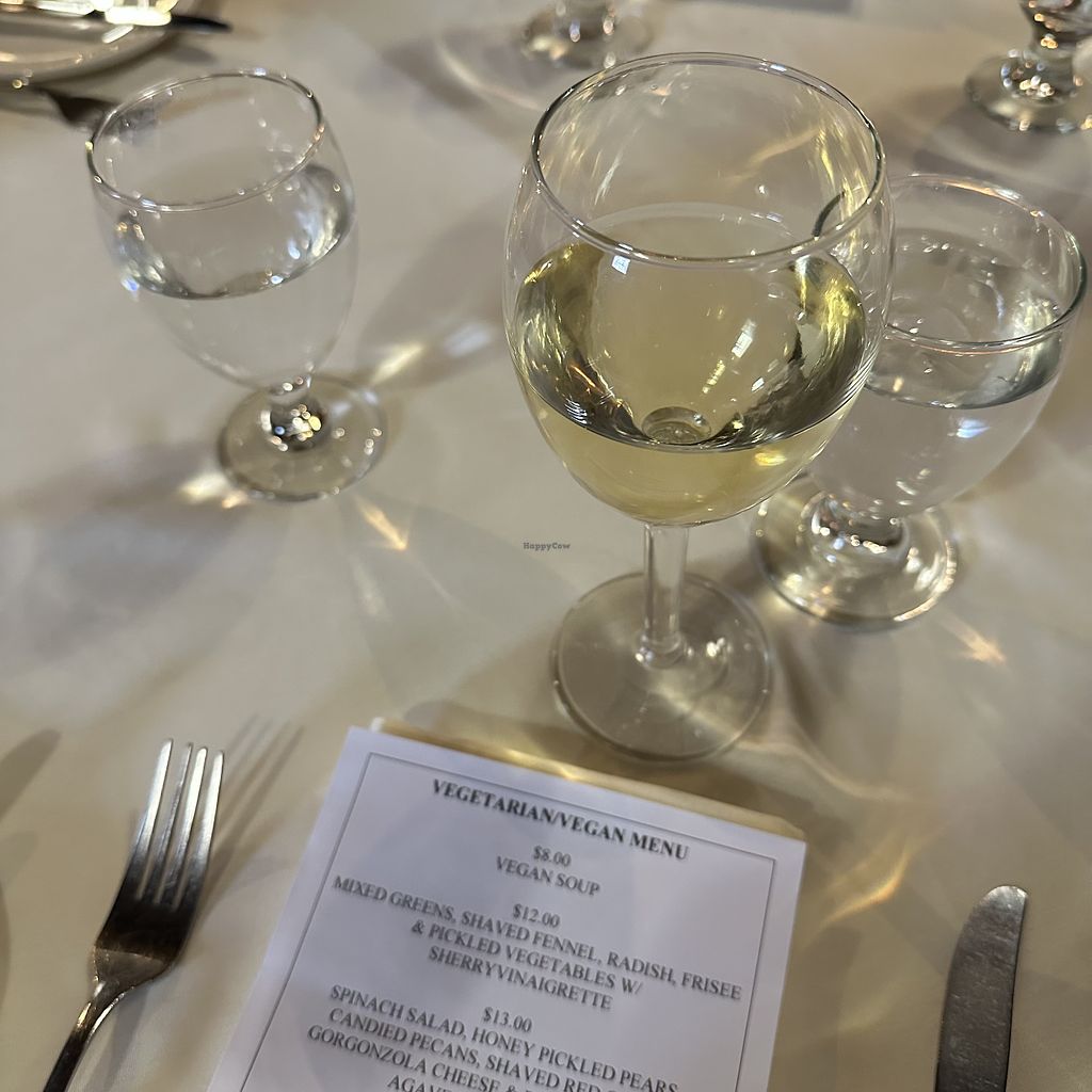 Serves meat, vegan options available. Has a separate vegan menu which includes a mushroom risotto and gnocchi with vegetables and veggie flat bread. Has vegan kid's meals. Open Wed-Sun 12:00pm-7:30pm. Closed Mon-Tues.