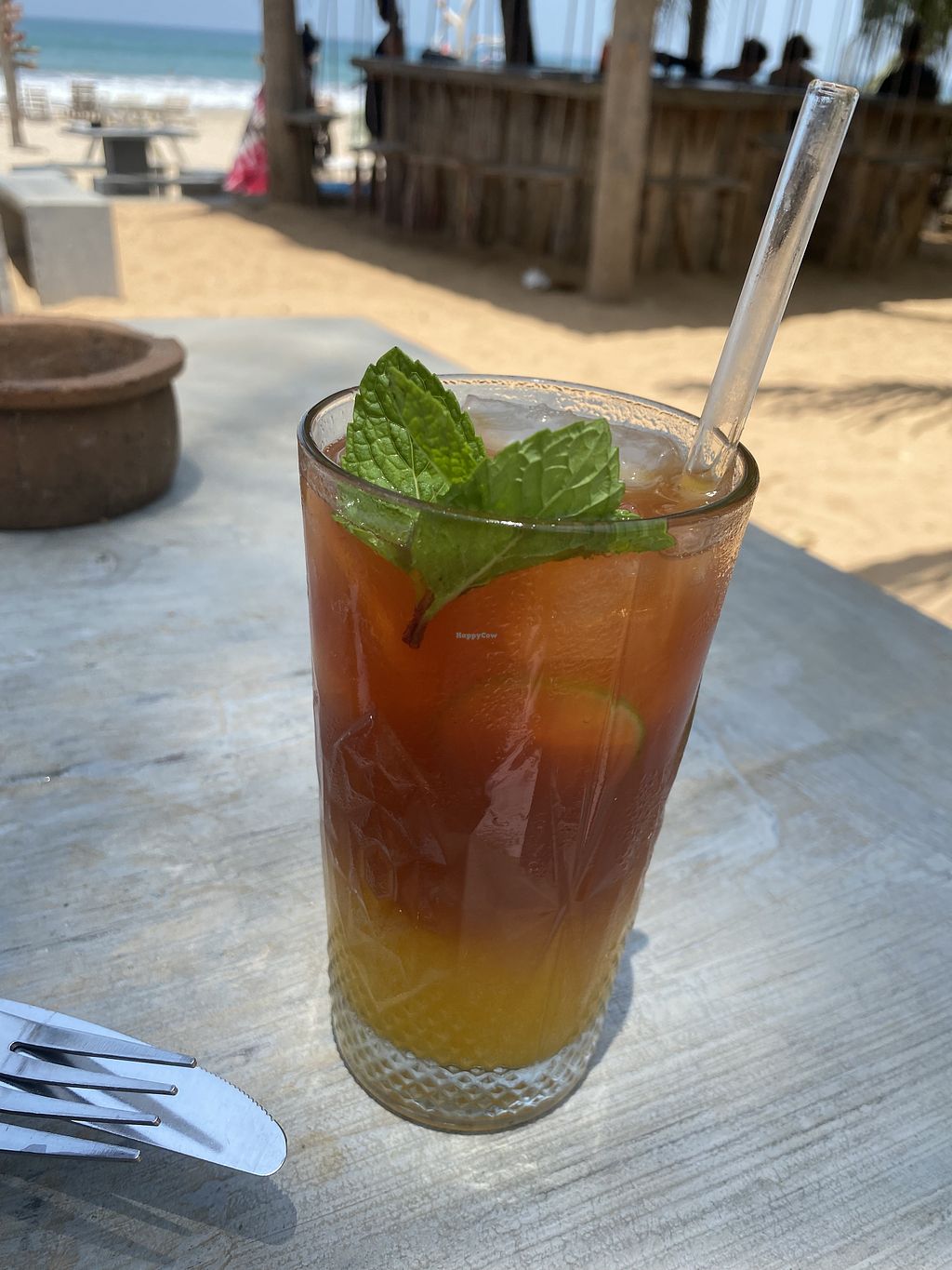 Delicious food, nice break from Sri Lankan Cuisine. We had masala chickpea crispy tacos w plantain chips. It was so yum & came with a few dips. We also had a smoothie bowl- strawberry / chocolate- it wasn’t vegan on the menu but they put the Nutella on the side to make it a vegan option. They have 4 smoothie bowl vegan options and 2 taco/burrito options. Good coffee and other drinks on the menu. Coconut milk, soy milk available. Highly recommend. It is also set in a cool area with concrete tables in the sand, right by the beach and by other food vendors