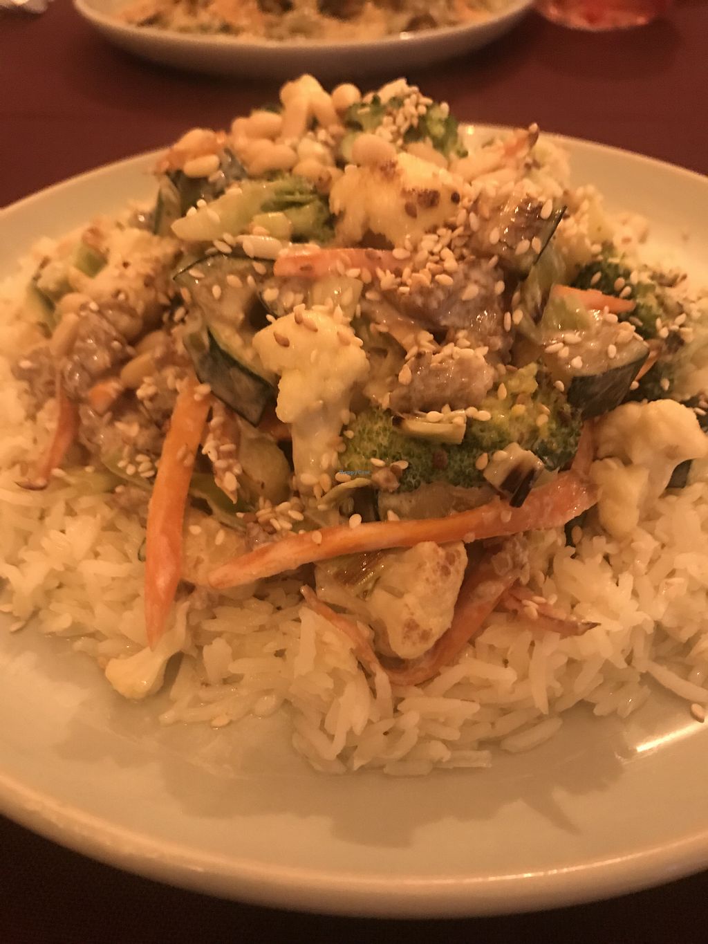 Read moreOur choice was tofu with vegetables, sautéed seitan with vegetables or chick pea curry. We had the seitan, which was excellent. A stir fry of small chucks of seitan plus a whole host of vegetables cut thinly, moistened with soya cream. There may also have been a few nuts in there. It was very tasty and a decent quantity.