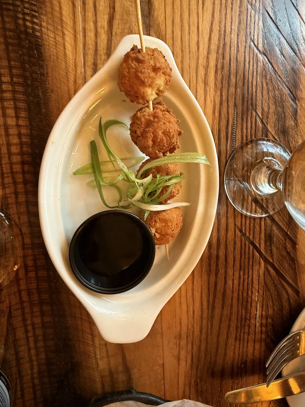 Good vegan options! Tapas style so expect smaller plates unless ordering an entree. I had the 5-spice tofu skewers with jasmine rice and the sweet potato stuffed scallion pancake (not always vegan, as they rotate the fillings). The decor was eclectic and made for a nice dinner atmosphere. My partner had the house infused spicy pineapple passion fruit margarita and loved it. We chatted with the owner for a bit and she was so lovely and attentive!