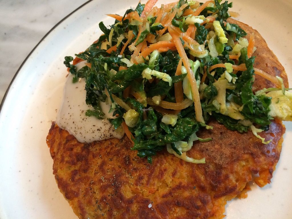 Read moreI had the carrot pancakes and my husband had the waffles. Hot vegan chocolate was delicious as well. The service is nice, the owner is super friendly. We had to wait 5 min for a table. They accept pets inside the store and have a little nook with a blanket for them