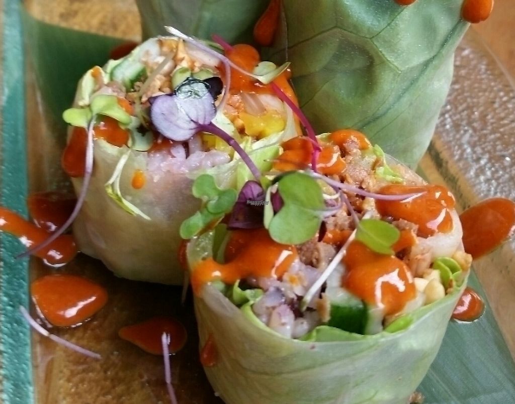 Serves meat, vegan options available. Casual cafe offering vegan sushi, paper rice wraps, salads and steam food, juices, smoothies, and acai bowls. Est. 2016 as vegan and added meat in 2017. Reported closed Oct 2019.