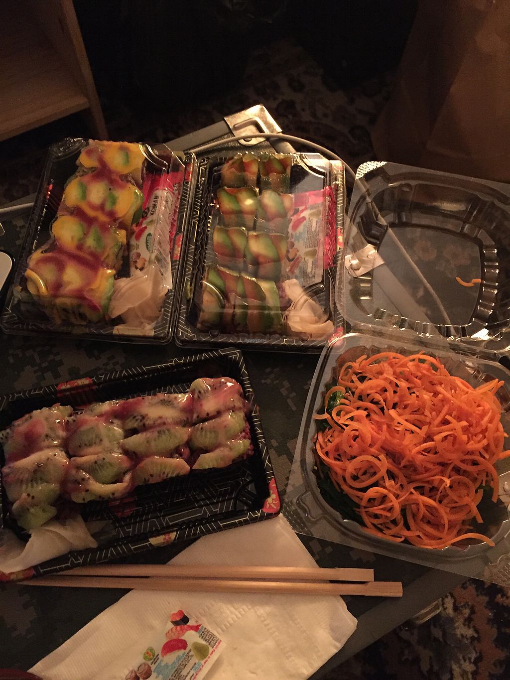 Ordered vegan sushi for home delivery and it was absolutely delicious! Each 8 piece roll came in it’s own box including soy, ginger and wasabi. The flavors were super yummy and fresh and I didn’t feel like I was missing out on anything because of all the flavors.