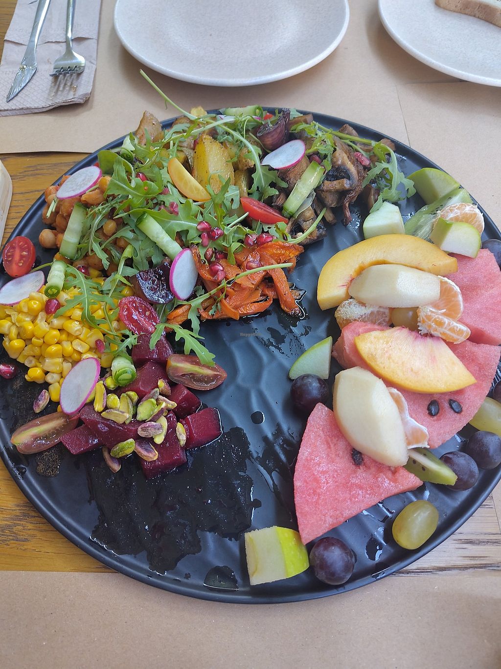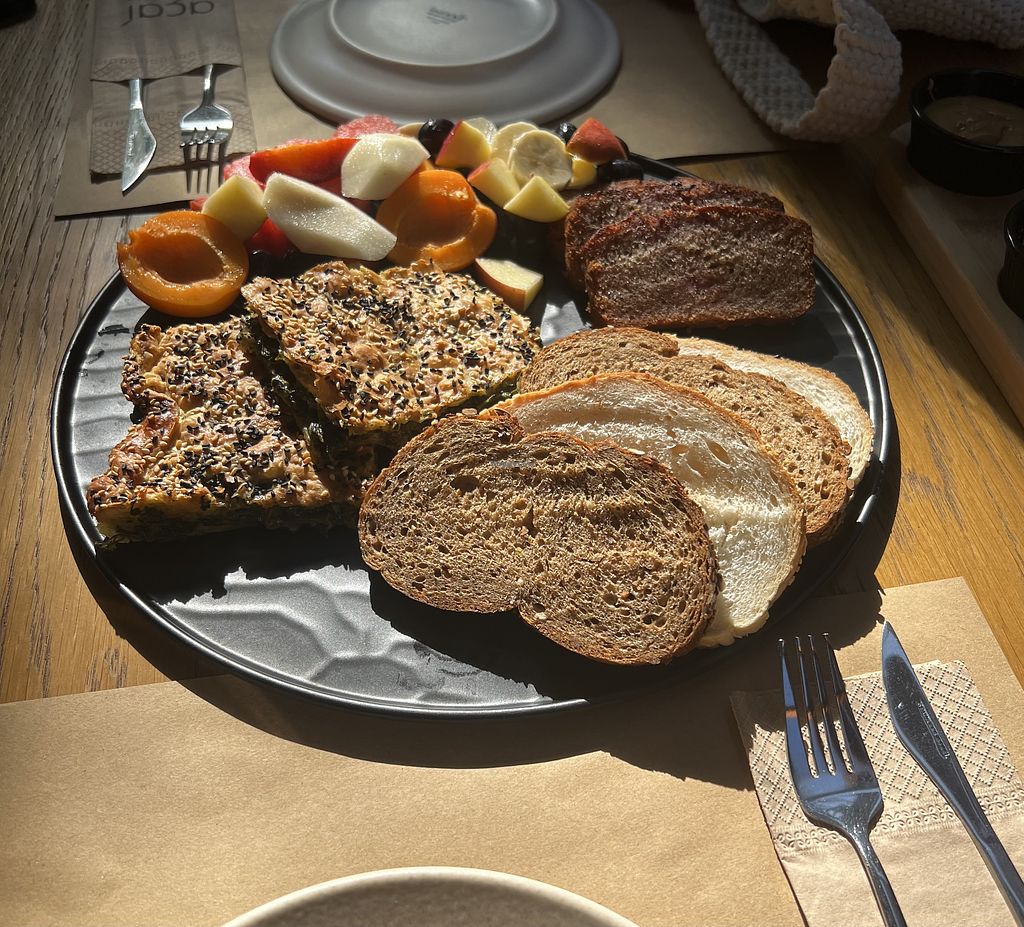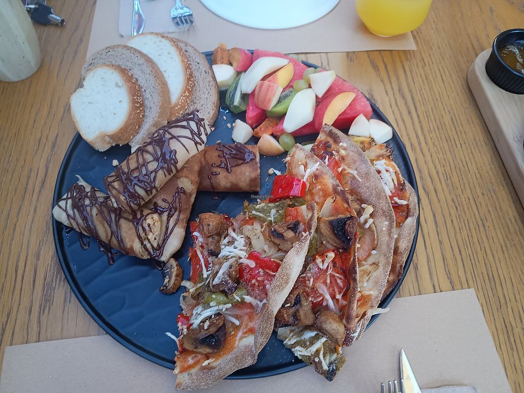Read moreFor breakfast we always got a platter with fruits, bread (with butter, jam and peanut butter or tahini), a savory and a sweet dish. It was really nice, but it could have been more creative especially the savoury dish. We received pizza once or salad. Would have preferred more breakfasty dishes like scrambled tofu etc.