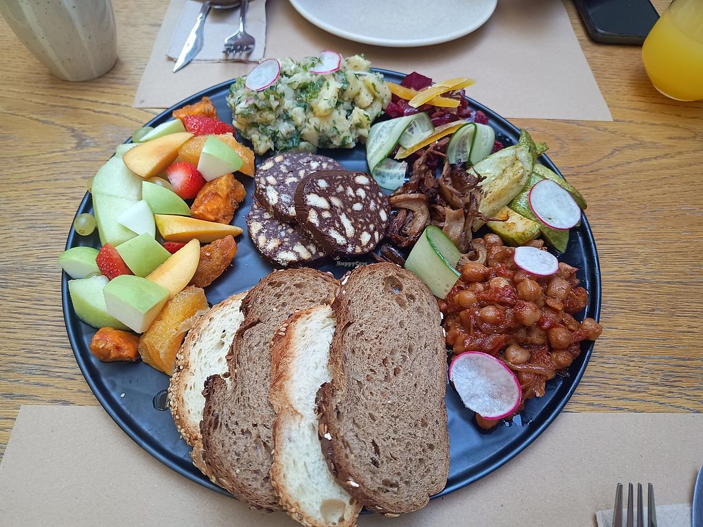 I really wanted to give this hotel five stars because I love supporting vegan businesses, but it didn’t quite meet expectations. The food was okay, though mostly vegetables and pasta with little variety. It would have been great to see some tofu, seitan, or tempeh dishes. Breakfast was especially underwhelming, with sweetcorn, kidney beans, salad, bread, and potatoes instead of more exciting options like scrambled tofu, carrot lox, or pancakes as listed on their “brunch” menu which most people don’t get to see.