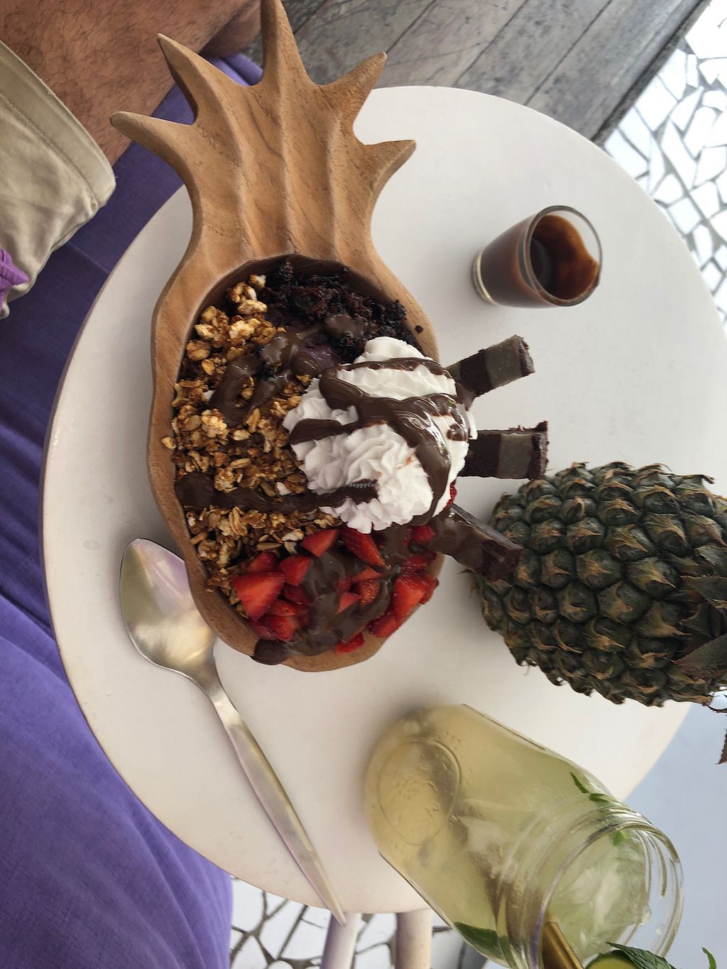 Wir hatten zwei bowls (eine mit açaí Eis und eine mit nusseis), sie waren sehr lecker und liebevoll hergerichtet, allerdings empfand ich die große Portion als recht klein und mit 100 Rupiah recht teuer, vor allem wenn man bedenkt, dass ich noch nicht satt bin. Wer aber nicht aufs Geld achtet, wird hier wunschlos glücklich sein!