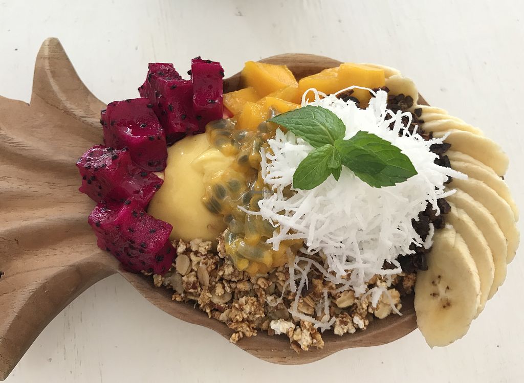 Delicious tropical piñata colada bowl with granola and cacao nibs - so…