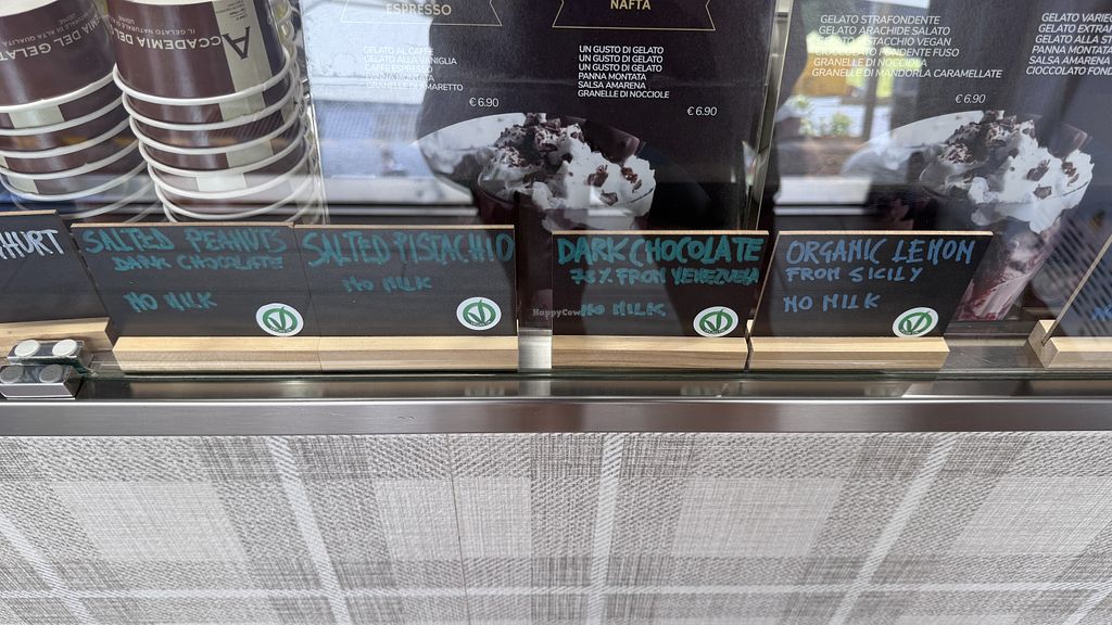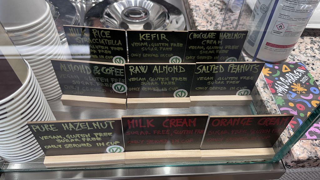 Clearly labeled vegan options, sorbets and gelatos as well. All absolutely delicious.