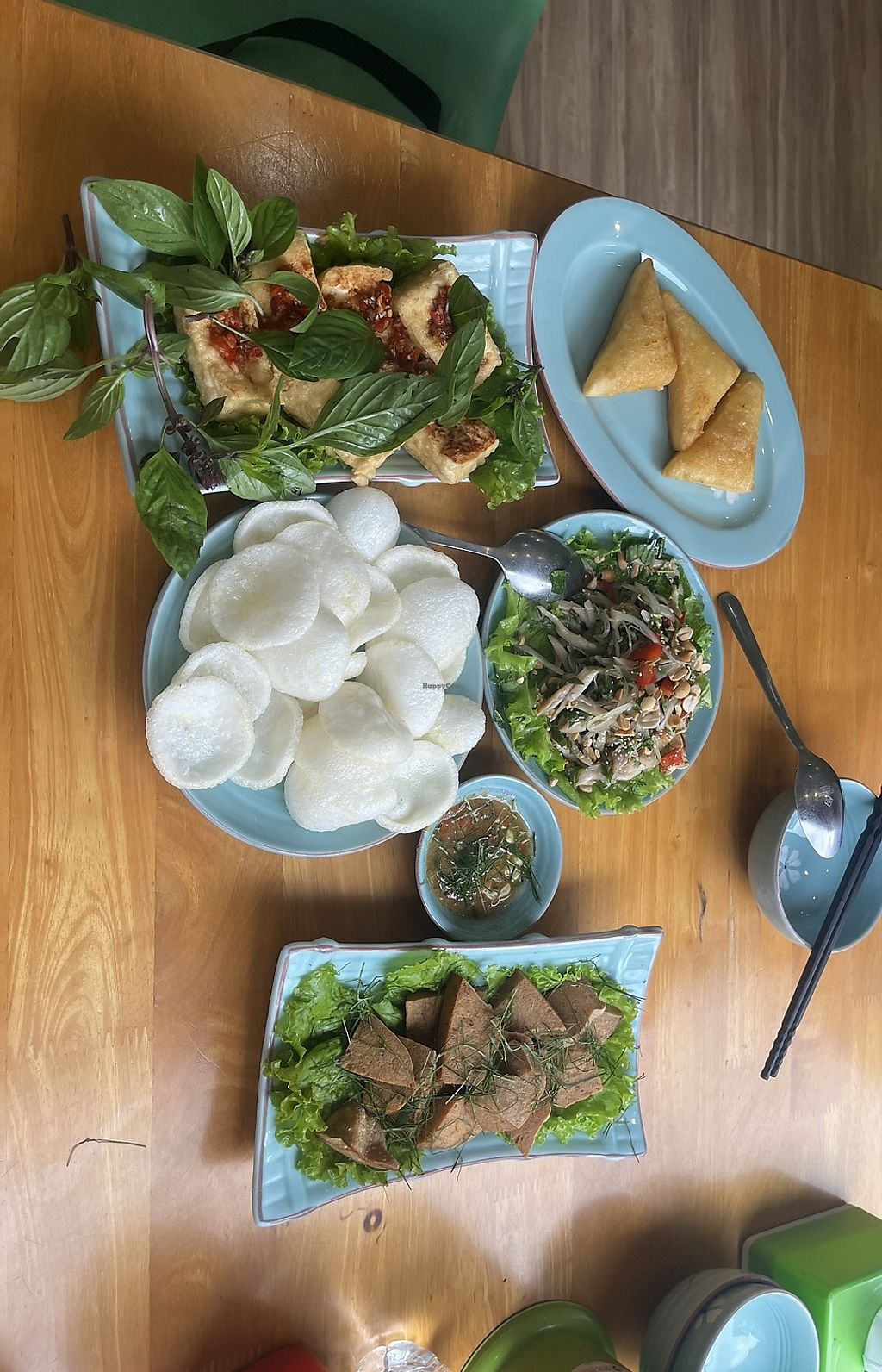 Papaya salad, vegan chicken in ginger, tofu with lemongrass and chilli…