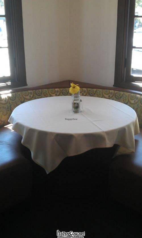 We had a great meal here -- friendly service and amazing food. We especially liked the chick'n piccata and the fajitas. Sophisticated, well-presented food, appropriate for foodies. We were a family group of four, but we also saw cozy bankets (sp?) that would be nice for a date. The vegan dessert choices were wonderful. We'll definitely return!