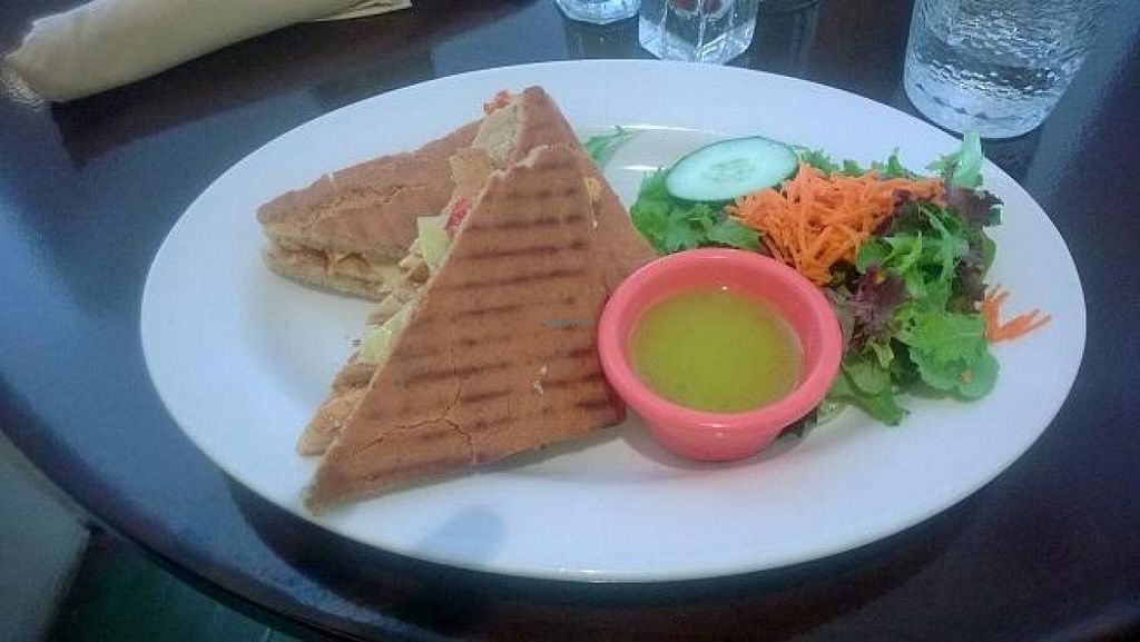 I had my first quiche(gluten free crust!) in over 30 years (I have been vegan for over 30 years) and it was quite exquisite -light and tasty and filled with veggies.My husband had the Chipotle Panini which was had a lovely chipotle aoli which gave it a great flavor - the gluten free bread was unique and irresistibly crisp.I couldn't finish my quiche so took some home for later and my husband took and apple pie home and we thoroughly enjoyed later with a cup of tea.
