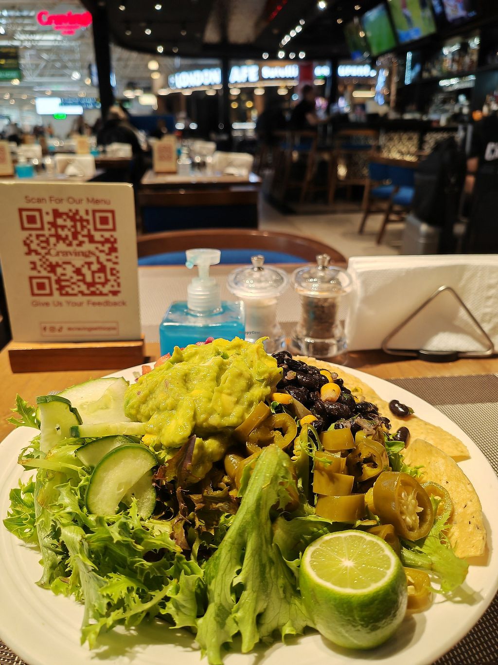 Thank you for the warning, Abivi. I was, I think, able to avoid hazards here. Nice to have an option at the airport. This is new since previous visit to Bole. Still, the identified vegan choice is the Nachos, so I had to have them modified down to, basically, just the chips. But it is nice to get out of the airport hullabaloo.