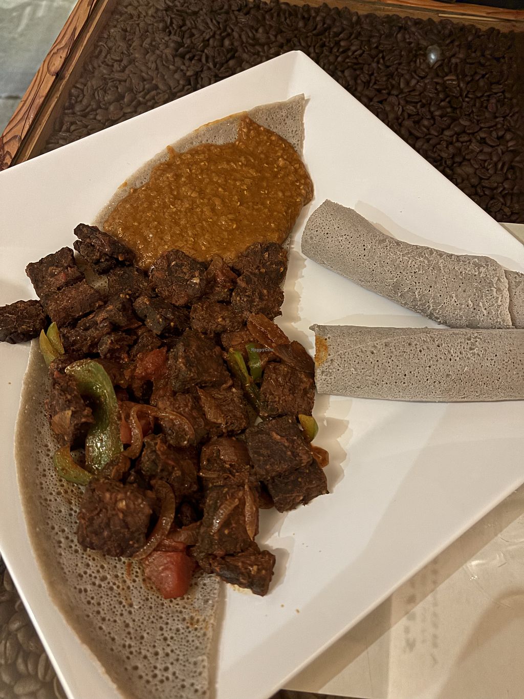 I have loved Ethiopian food since I was a kid in Texas and went to all the spots there, later in DC, Chicago, NY, the Bay Area etc. this is so nice having this in town. Some of the dishes in the veggie combo are sparse and I always have to order more bread. Wish they had the traditional tables, hand cloths after meal, a drink menu and a better ambience but it is still so lovely to have this here and veggie combo is vegan.