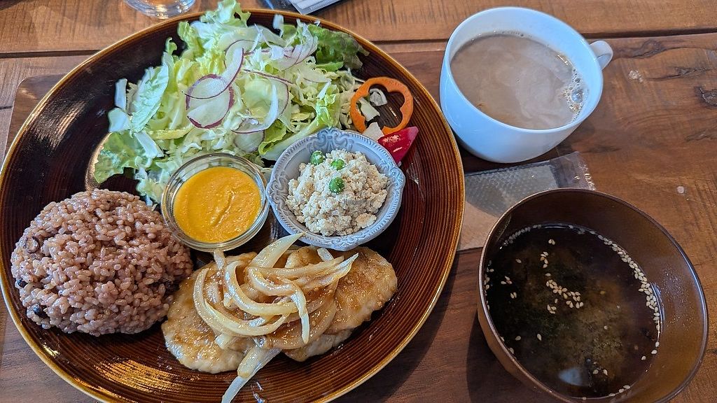 Lunch plate set (with fermented carrot dressing, and sesame soy meat),…