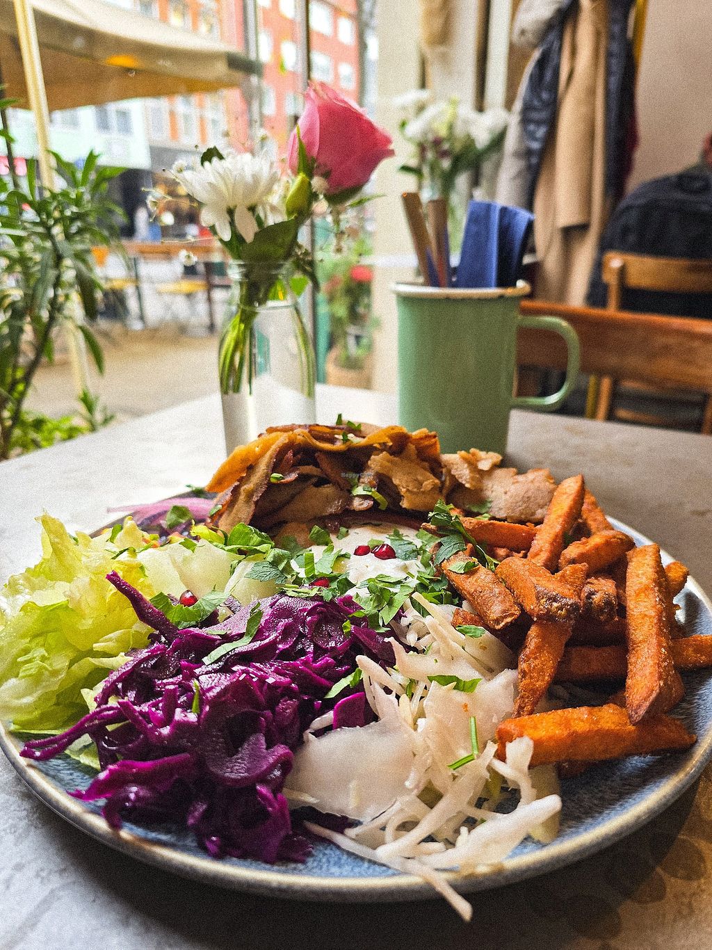 Since the reviews here and the google reviews about this place were that good we had to go and try it out. I decided to take the vegan Döner Teller which is almost 13 Euros so definitely not cheap but what you get is convincing. A plate full of salad, fries and this amazing tasting faux meat. I think this was the best vegan Döner meat I've ever had. I wish they would put a bit more of the sauce on the plate since you use it for fries, salad and the meat.
