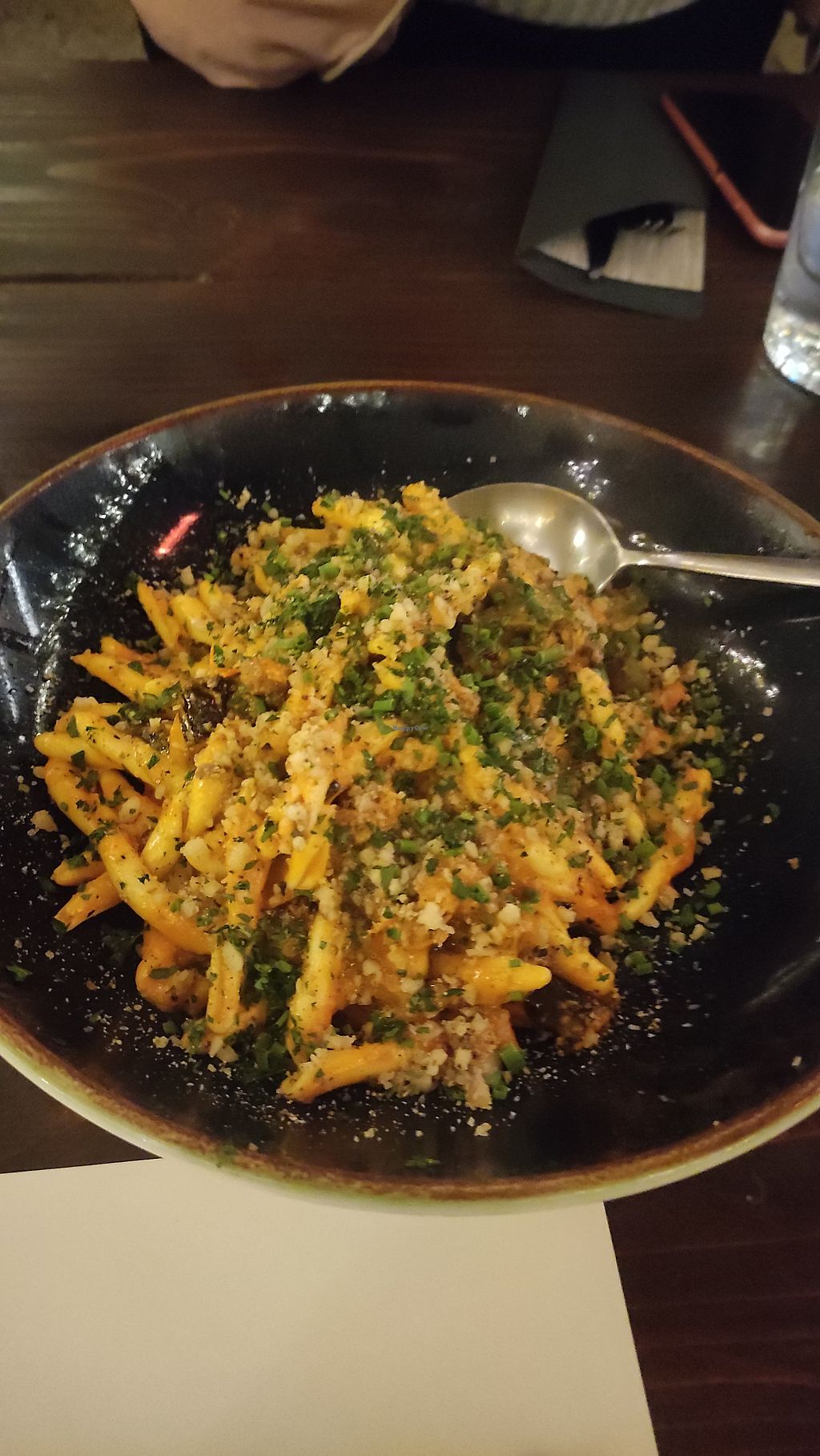 Vegan pasta with pumpkin sauce and cauliflower