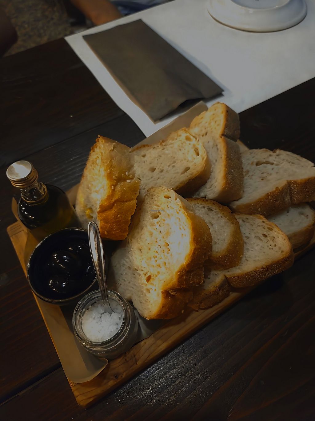 Typical Greek side dish: bread with olive oil. In this restaurant with…