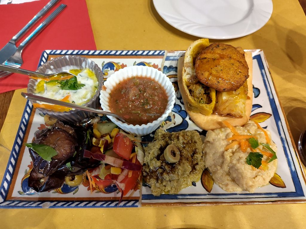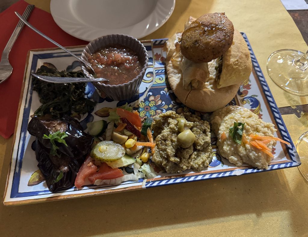 Loved this place! Wanted a break from pizza and pasta and I’m so glad I came across this find. The antipasto (appetizer) sampler was delicious! My favorite part of the meal. I also had the vegetable stew which was very flavorful. Make sure to tell the staff you need vegan food; they were knowledgeable and eager to share the options. Great find!