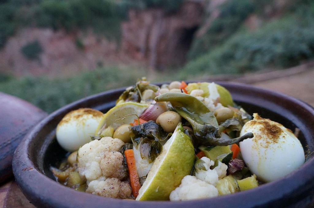 Small cafe offering vegetarian and vegan tajine. The owner built several small terraced seating areas into the the side of a hill overlooking the gorge.