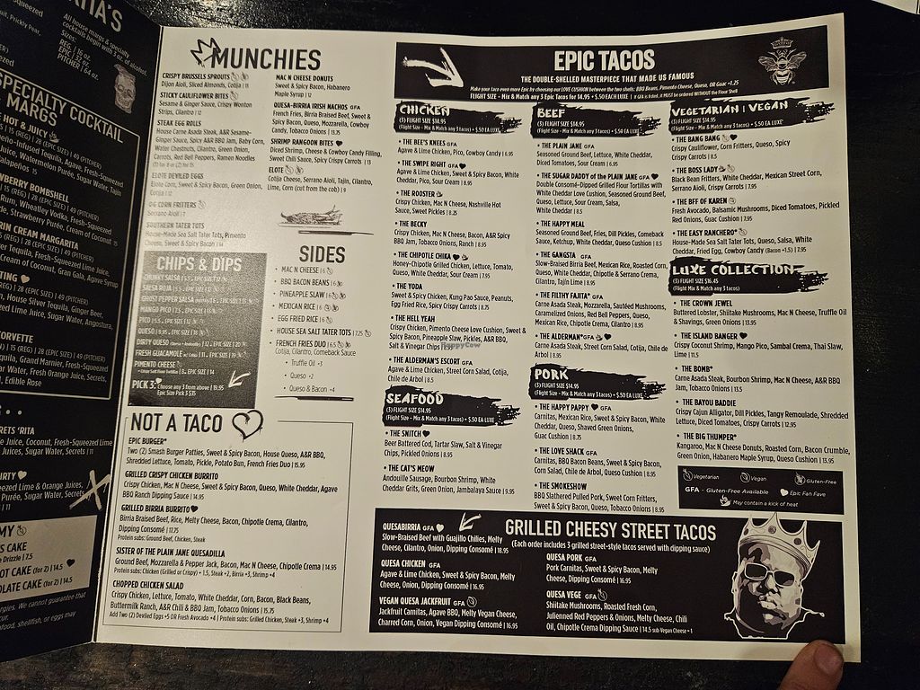 Serves meat, vegan options available. Casual Mexican chain featuring a variety of tacos and gourmet toppings. Vegan-friendly offerings include vegan tacos, burritos, sticky cauliflower bites, three fully vegan taco flights, and more. Open Mon-Thu 11:00am-10:00pm, Fri-Sat 11:00am-11:00pm, Sun 11:00am-10:00pm.