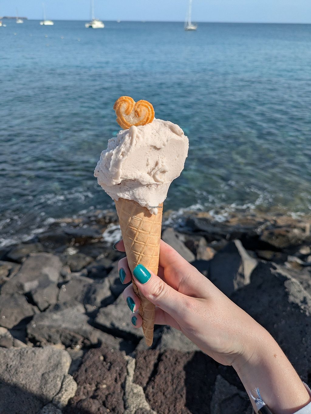 2x viking (dragonfruit), 1x plátano (banana) in waffle cones