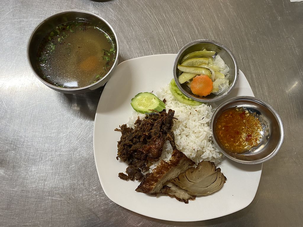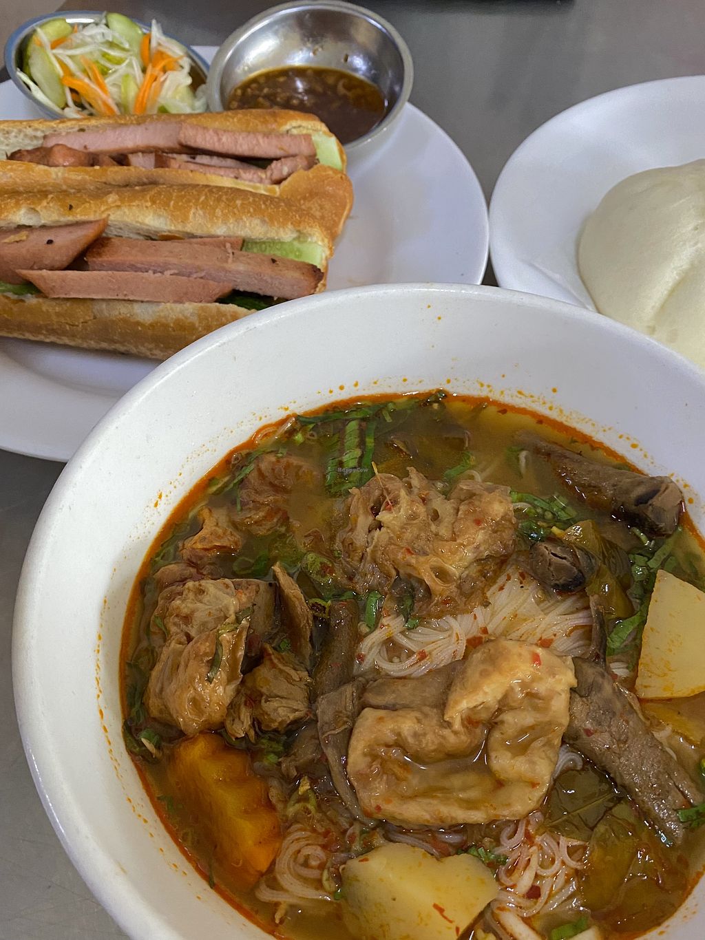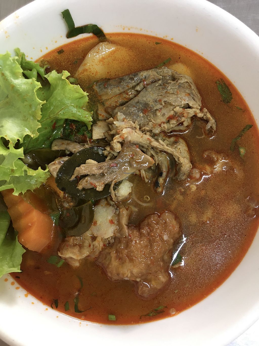 red Curry with traditional Khmer noodles and Lemon ice tea