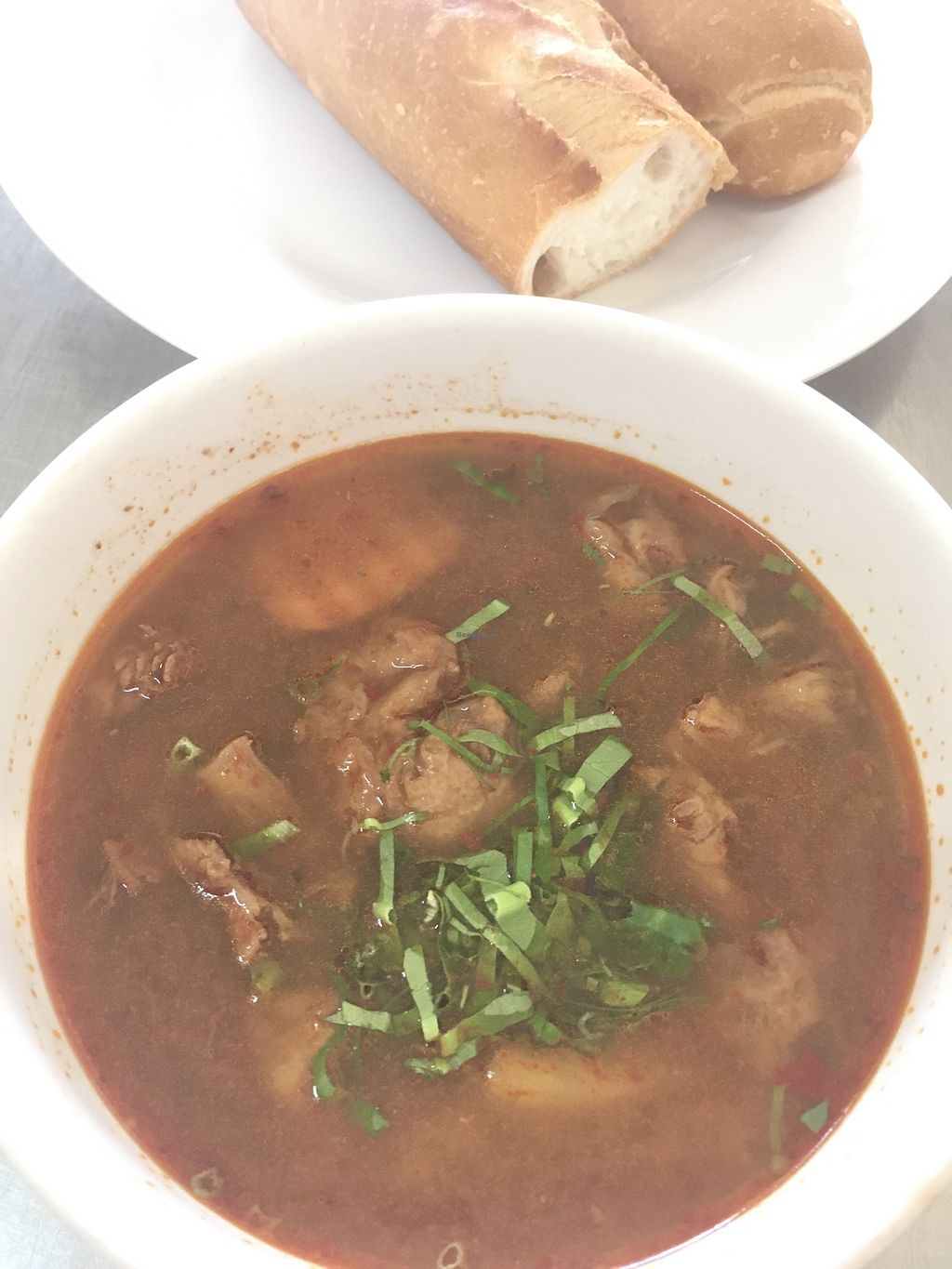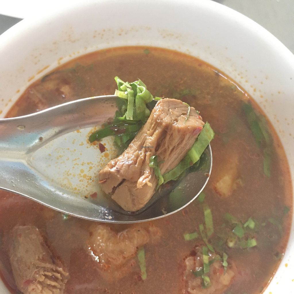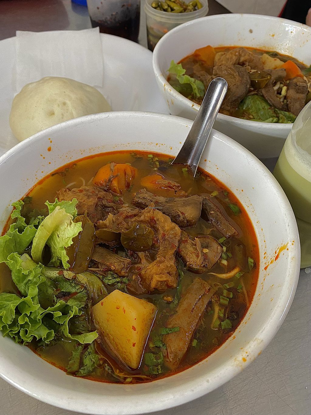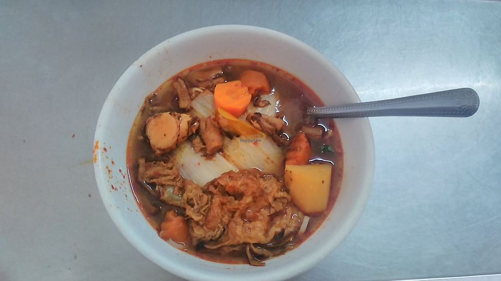 Vegan sweet beef soup with Chinese noodles (rice vermicelli)