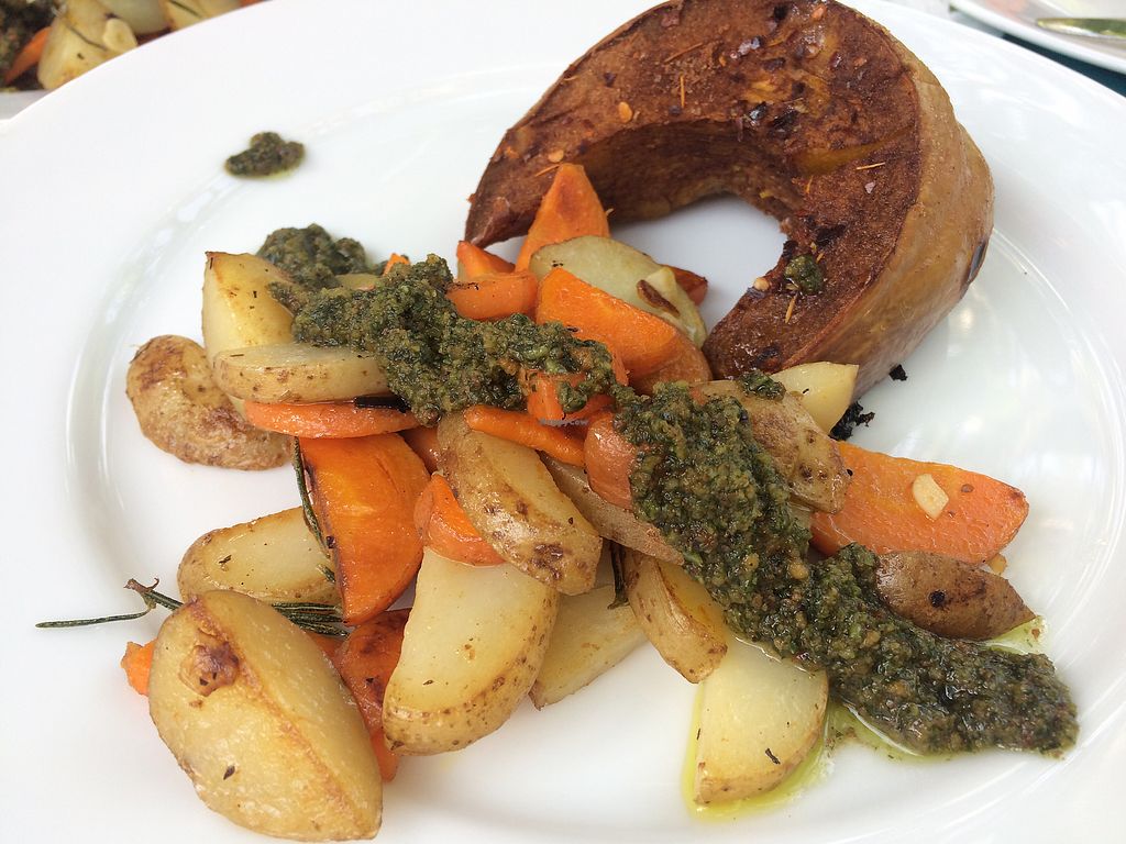 Cinnamon pumpkin, rosemary potatoes and fresh basil pesto