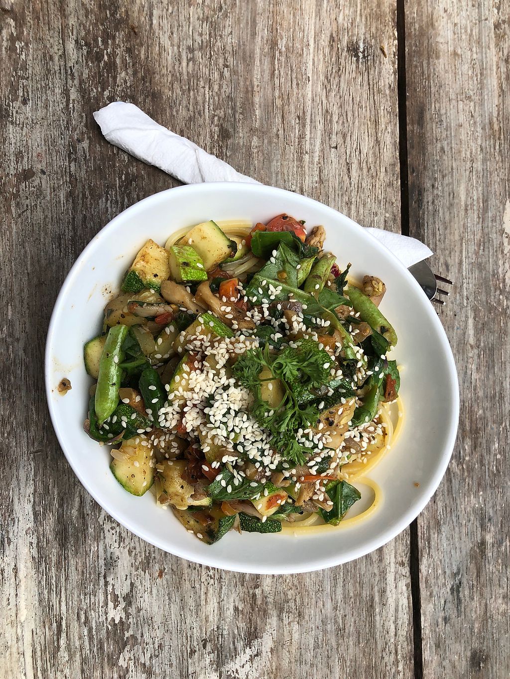 Pasta with steamed veggies