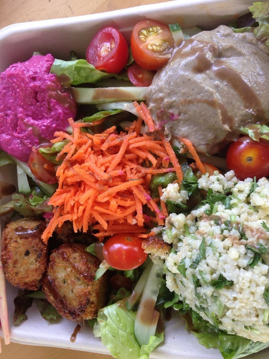 Read moreYesterday, I had my favorite "Medi-Bowl" with kalo falafel, beet hummus, babbaganoush and tabouleh. The restaurant was busier than usual (for a Sunday), due to a permaculture event happening. Still, it was very relaxing in their "Garden of Eatin'" (listening to live Reggae music from the event), and I could have stayed there all day.