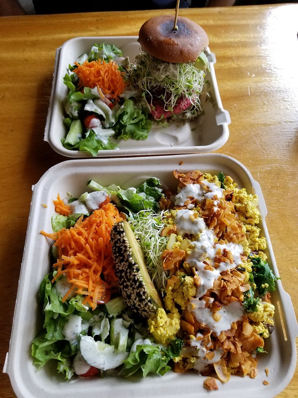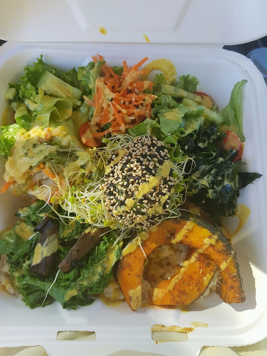 Took us a while as we were stuck on the hwy to get there, but boy it was worth it. The food was fresh, flavorful, and other than the honey, everything was vegan. I got the Tofu Poke bowl and my husband got the Kalossal burger. Both were so delicious. The smoothies were so good too!! We also got a hand made crystal there.