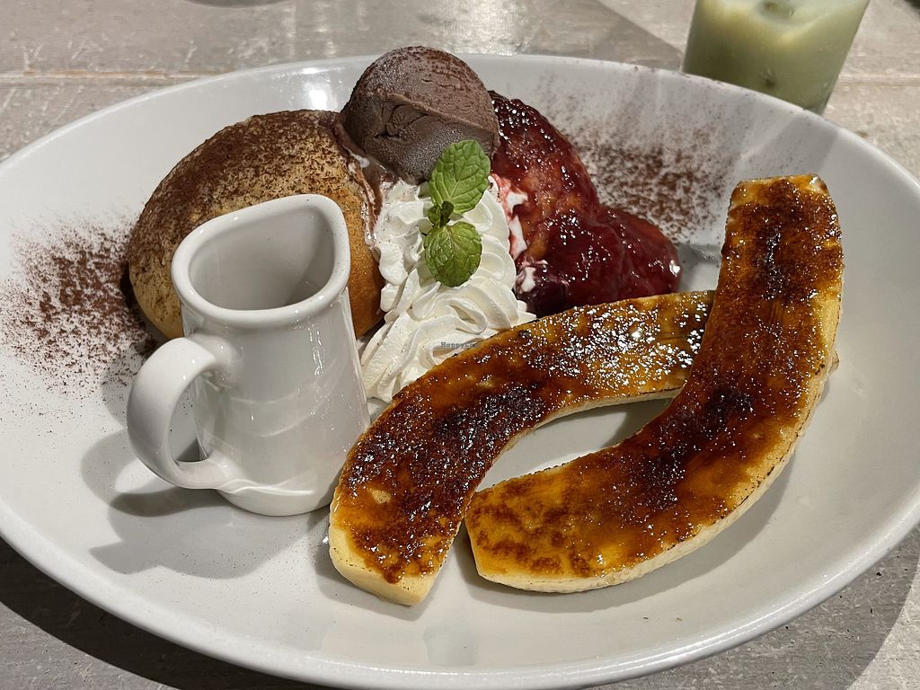 Lovely relaxed atmosphere. Multiple vegan options including deserts such as ice cream and pancakes.