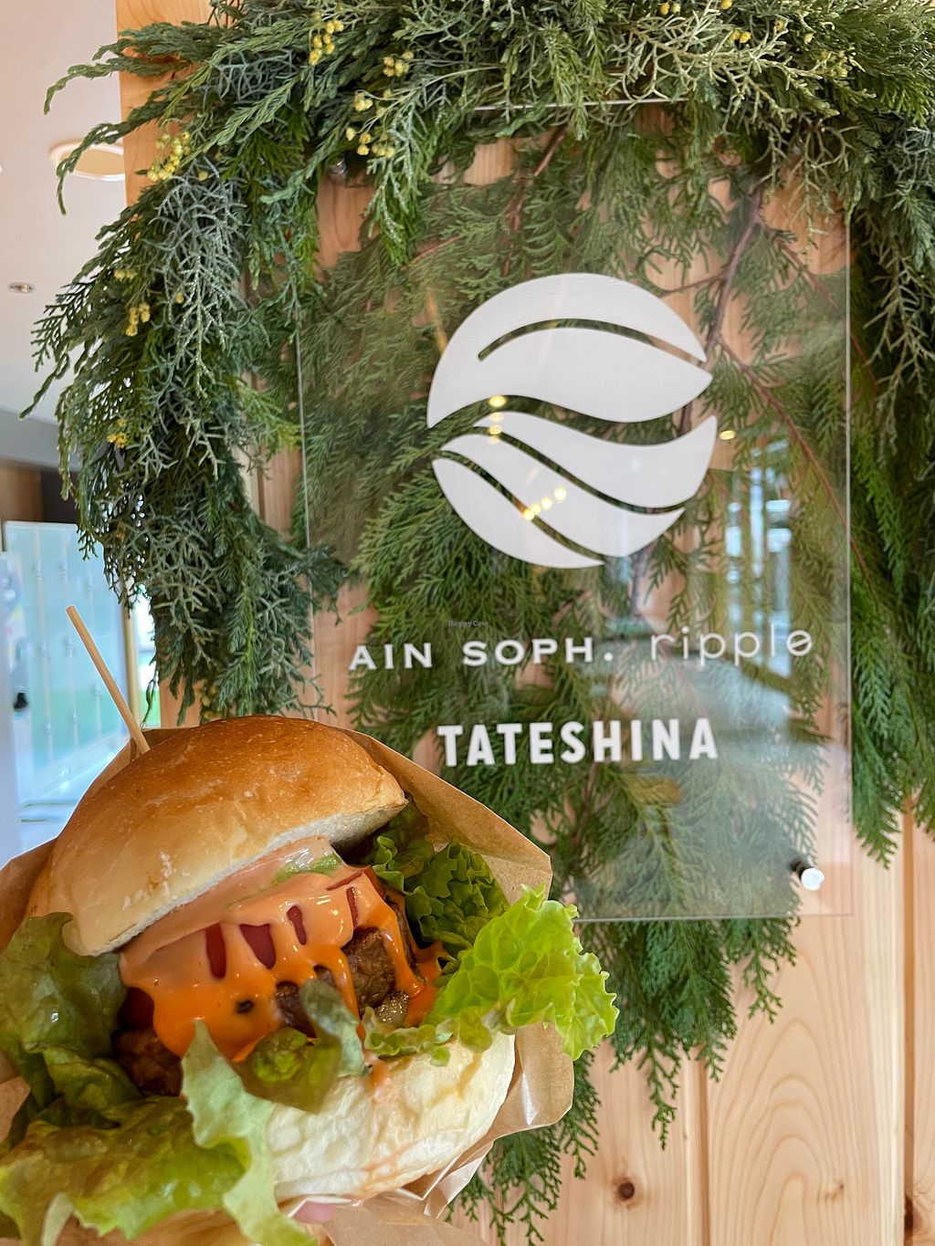 Branch of vegan burger specialty store "AIN SOPH. ripple" on the shores of Lake Tateshina. Serves a variety of burgers, sides, sweets, and hot and cold drinks. Also open at “Pilatus Tateshina Snow Resort” until the end of March. Open Mon 11:00am-3:00pm, Fri 11:00am-3:00pm, Sun 11:00am-3:00pm. Opening hours change seasonally. Check before visiting.
