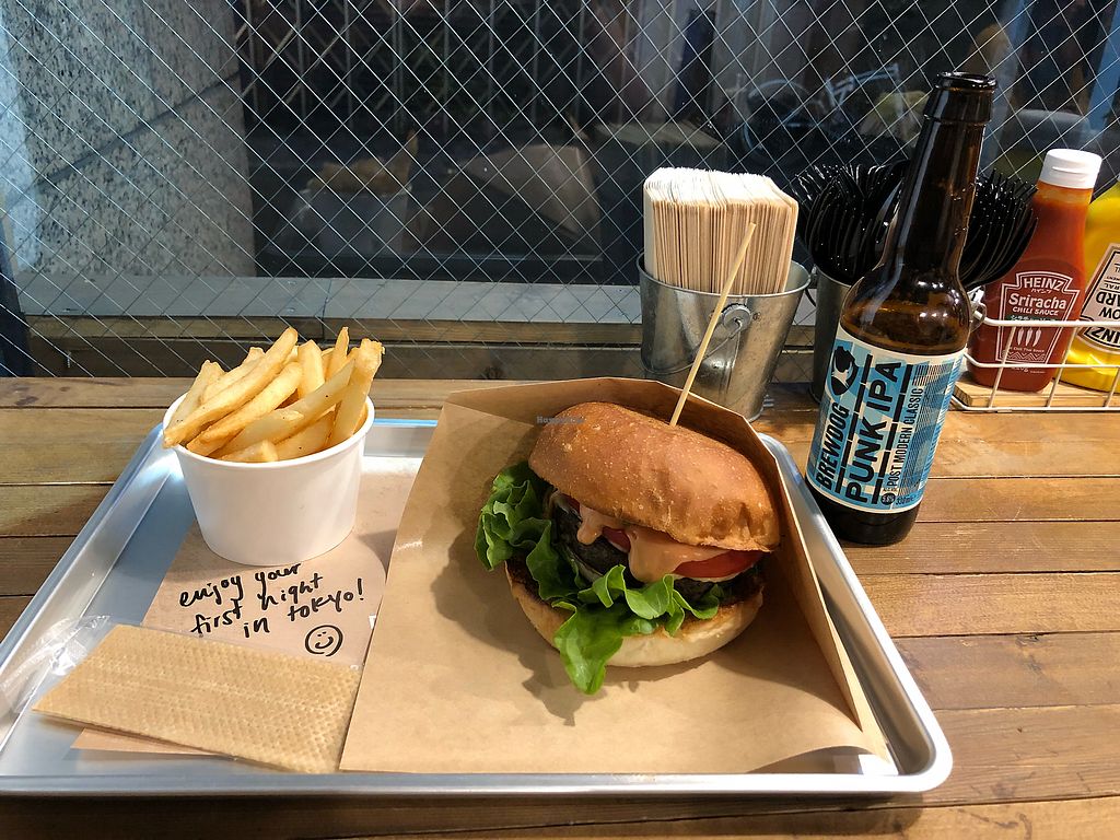 I had the "chicken" burger, which was delicious. The chips with cheese topping weren't top quality though - having had vegan cheese (Violife and other nice brands) in Europe, this one was felt a bit too coconuty and its texture was not exactly smooth. Still, edible! The place is small and packed with foreigners, easy to forget you are in Japan. I would definitely come back to have that burger again. Pricewise - typical Tokyo, with burgers for over 1200 yen. Portion sizes are reasonable, a set menu with fries should satisfy you.