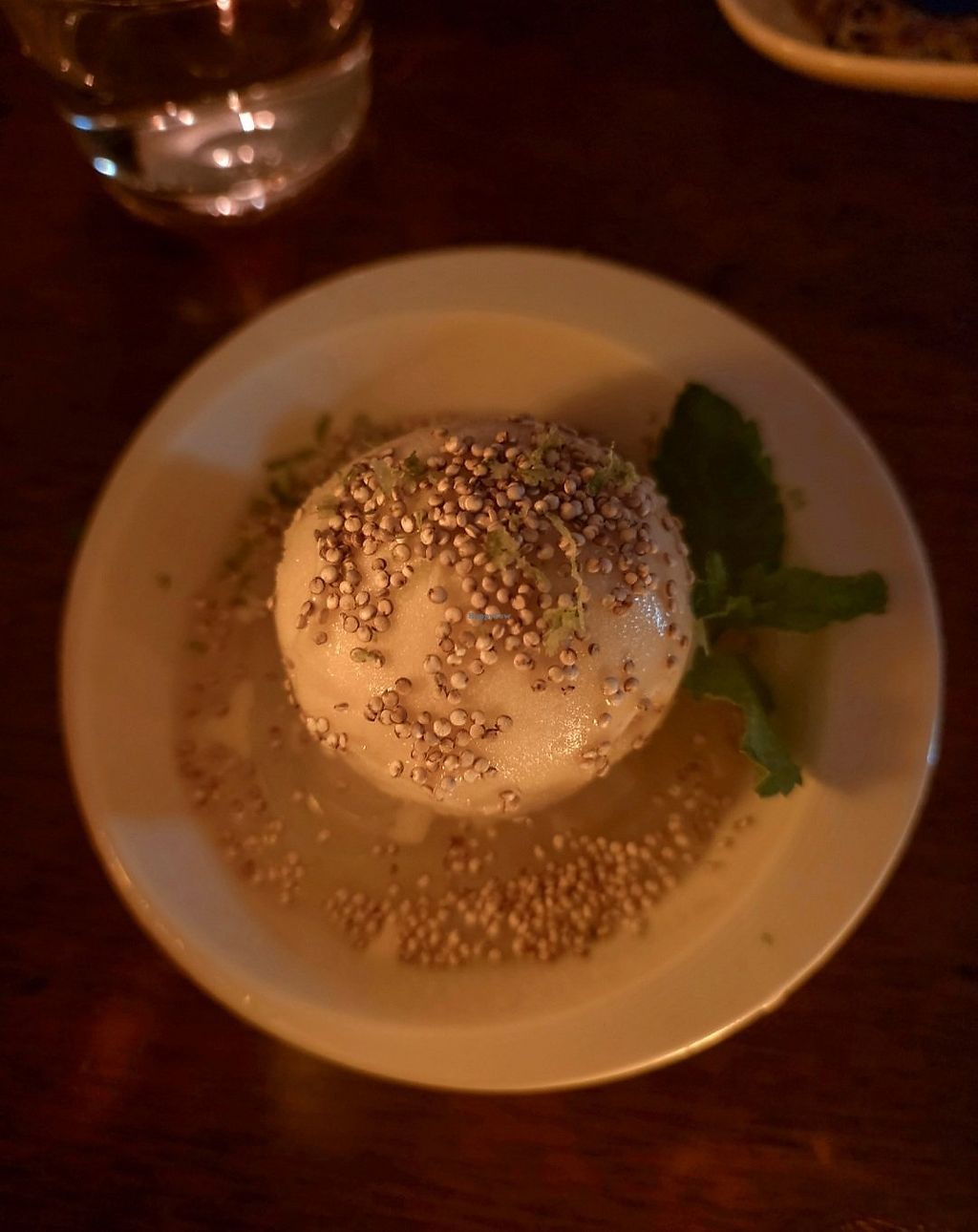All the ingredients were noticably high quality and the desserts were especially impressive!! There were two dessert options, a passionfruit sorbet with what I think was lychee jelly? And a chocolate cake. Service was top tier, I honestly wasn't coming in there expecting to get such great service since I thought it was just a bar/tapas place but I left pleasantly surprised. I'm so happy that they opened, the vibe is great and I hope they make other restaurants in the bay with more concepts