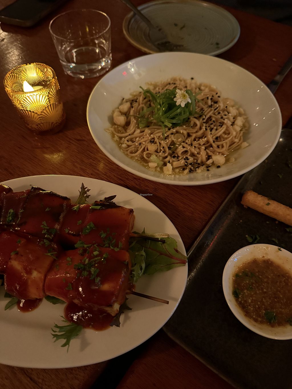 Best new restaurant in SF!! Had the oyster mushroom skewers, udon noodles, yuca sticks, & pineapple BBQ tofu - favs were the mushroom skewers and udon noodles.