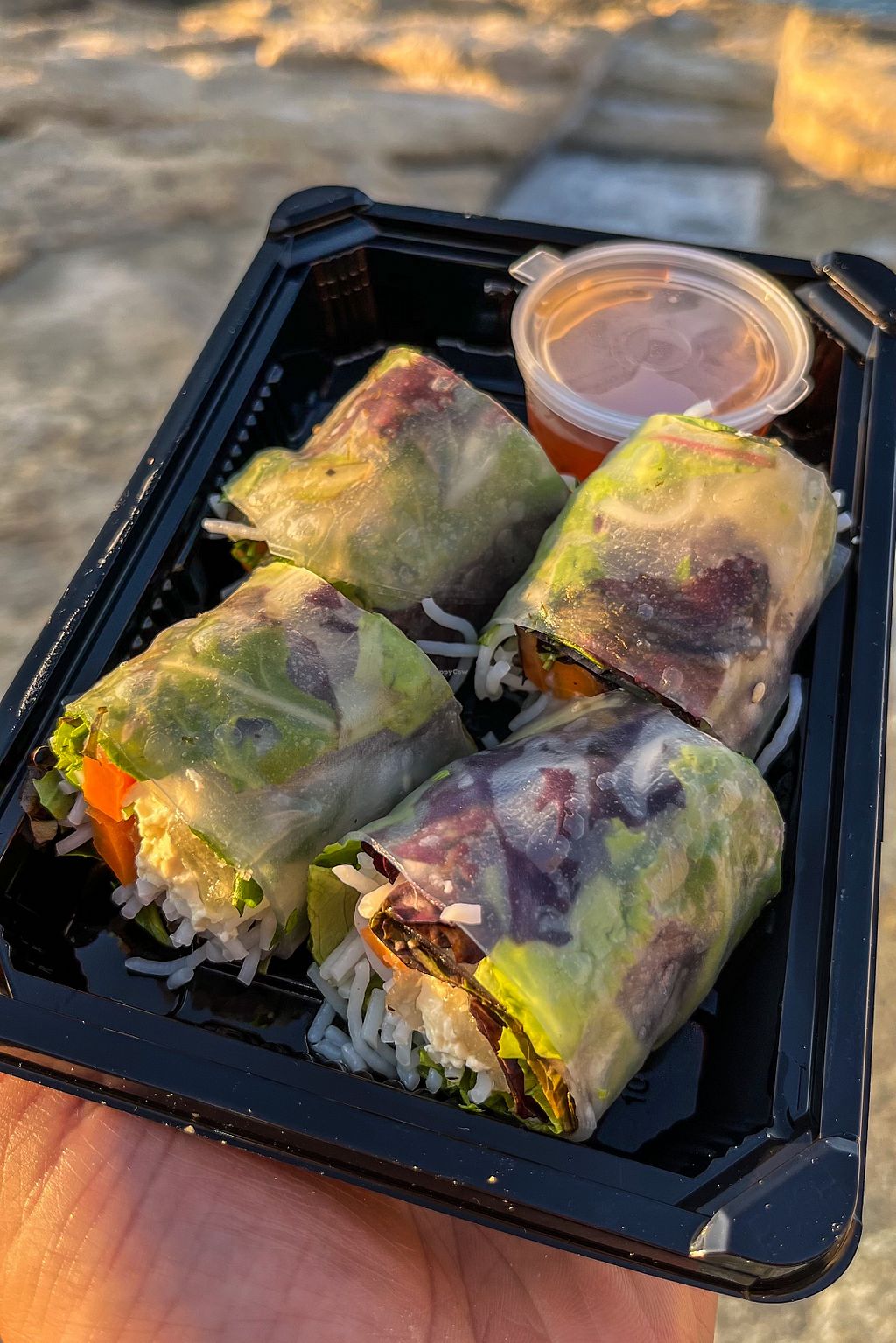 vegan roll on the left and the aubergine fritter on the right