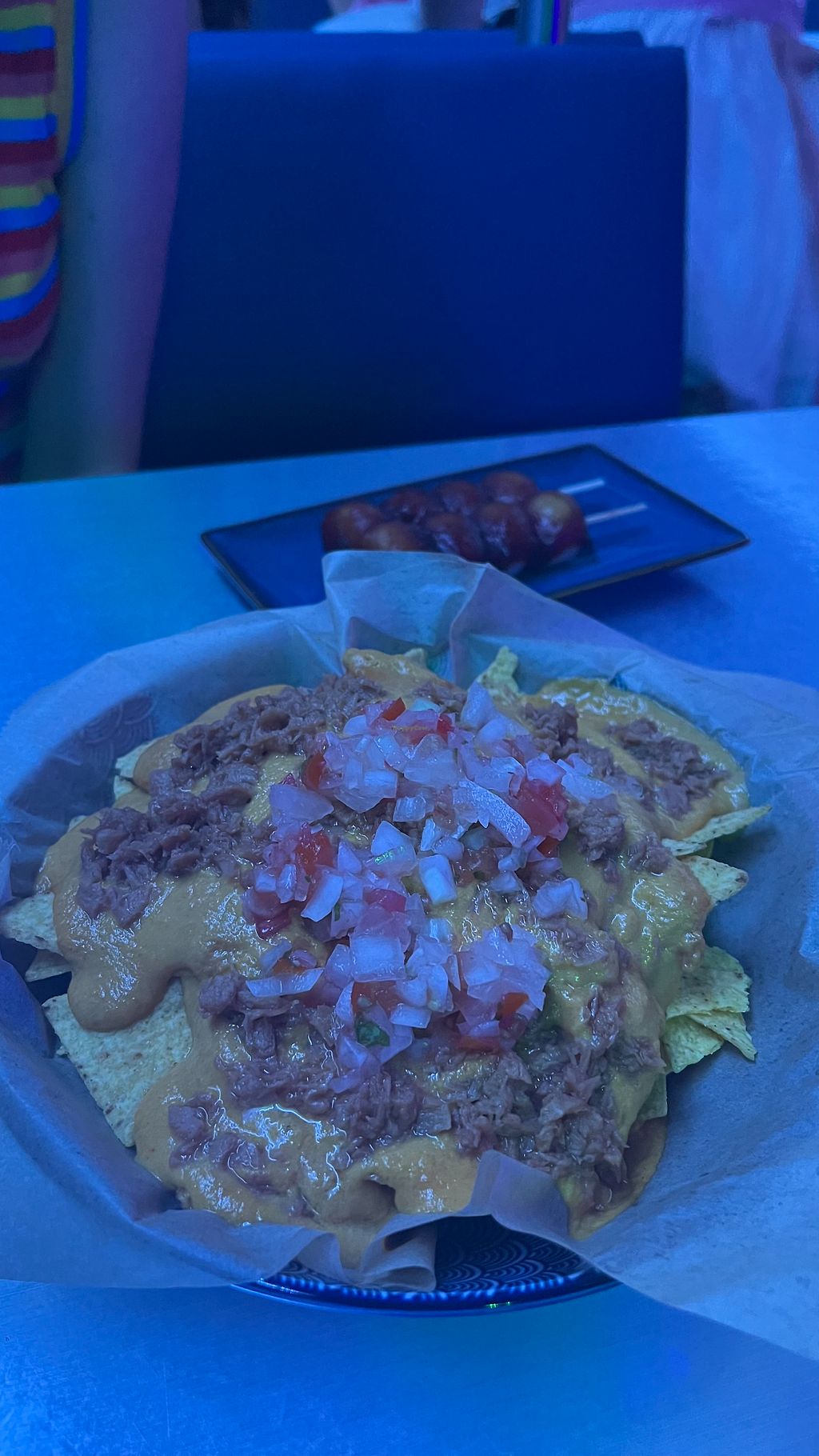 Read moreDesde bao de tortilla vegana de patatas, Kimchi plant based y mayonesa vegetal de soja... hasta nachos completitos con una salsa de queso vegetal casera a base de tubérculos y carne de soja picada jugosa. También hay un onigiri de atún vegetal y mayonesa de soja muy recomendable.