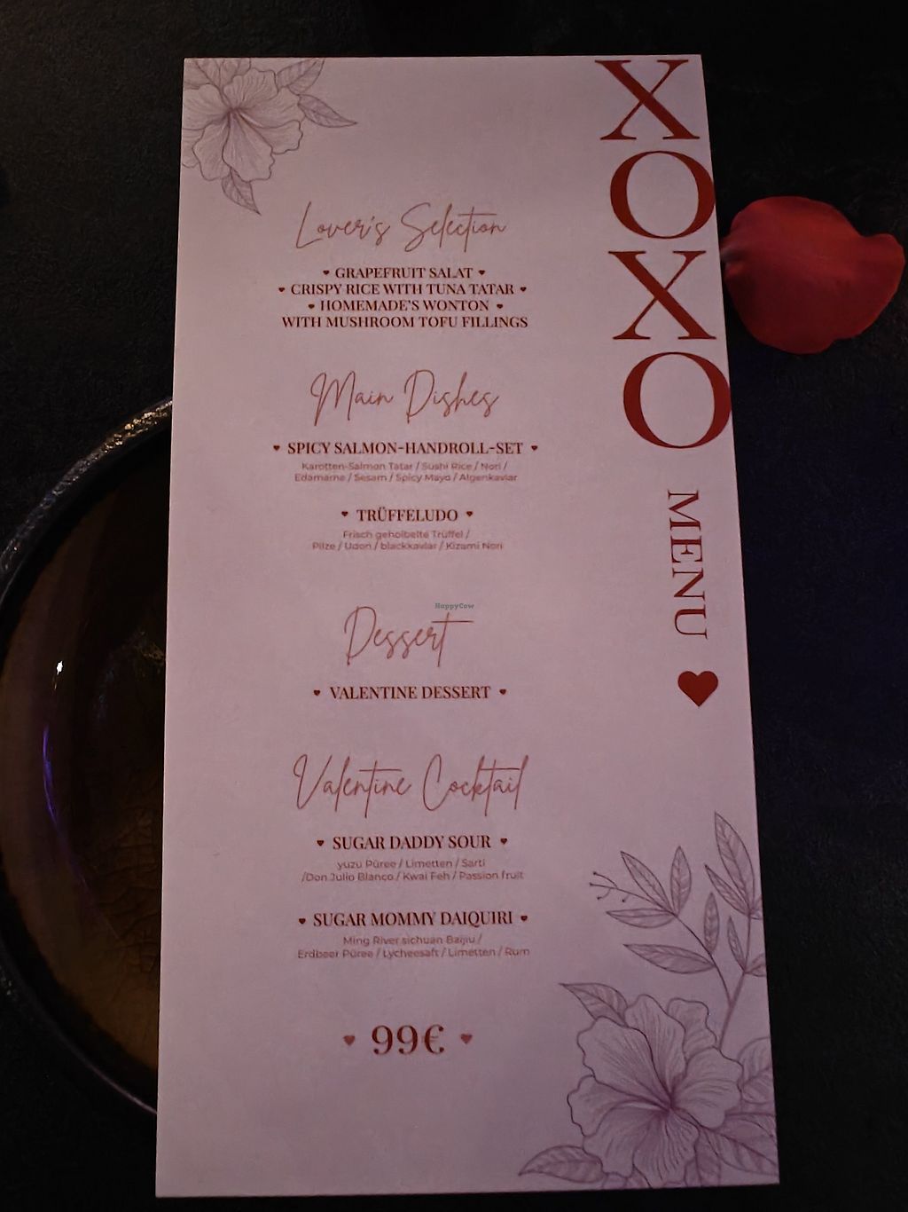 Es gab ein spezielles Menü für den Valentinstag. Das ganze Restaurant war liebevoll mit Ballons und der Tisch mit Rosenblättern dekoriert. Das Menü war komplett neu mit zwei sehr leckeren Cocktails. Die Cocktailkarte ist hochinteressant mit vielen Eigenkreationen. Die Hauptkarte ist vor allem Vietnamesisch plus Sushi. Wir kommen auf jeden Fall wieder.
