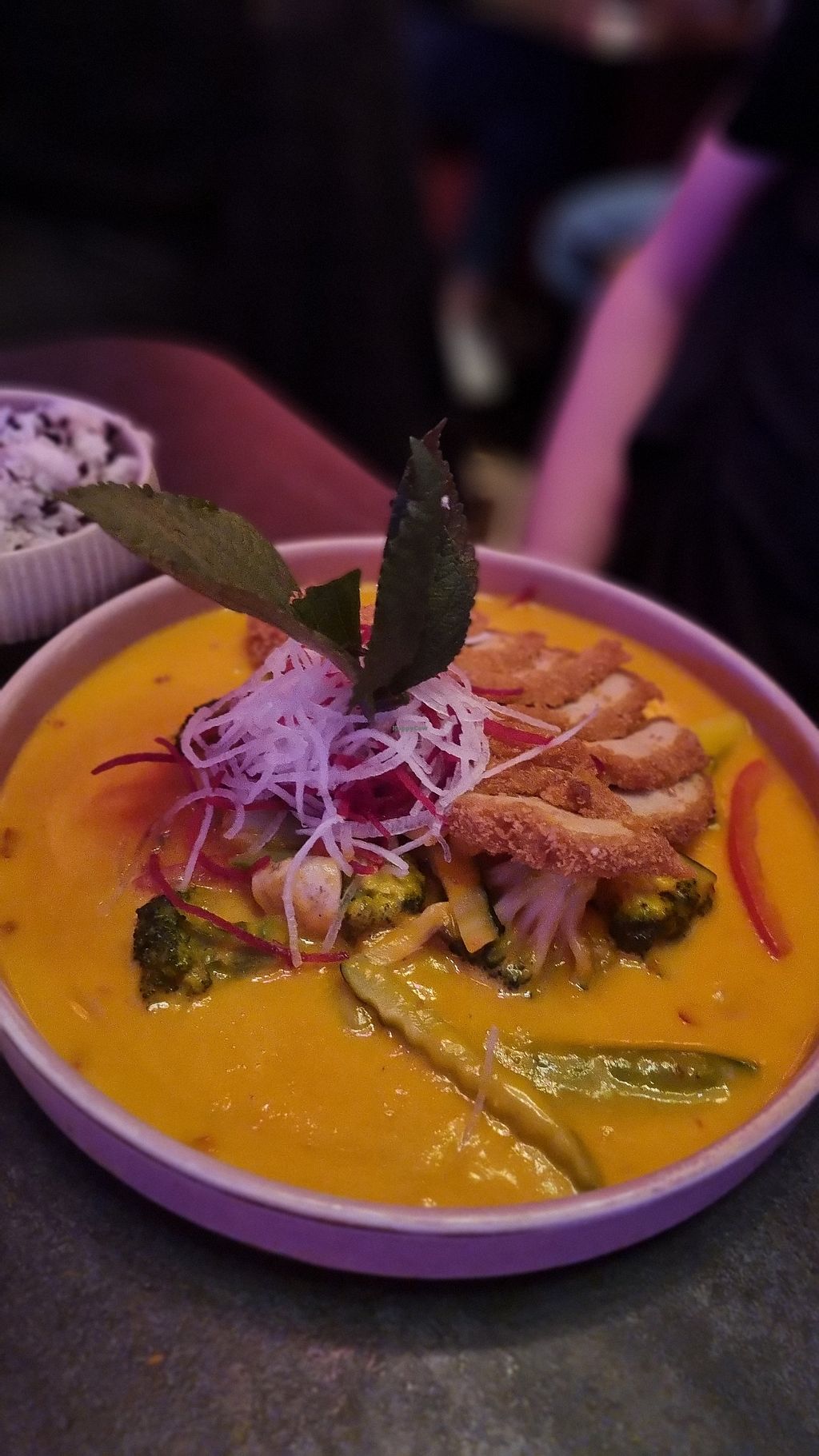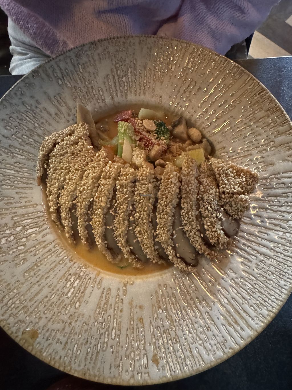 Had a peanut curry which was delicious but not spectacular. The other dish was udon stir fry with Duck substitute. Their Duck substitute tastes very much like duck - which would make it perfect for non vegans who are open to trying a “cruelty free” cuisine. However, the dish was drenched in what tasted like liquid smoke-very over powering, taking away from a flavorful experience.
