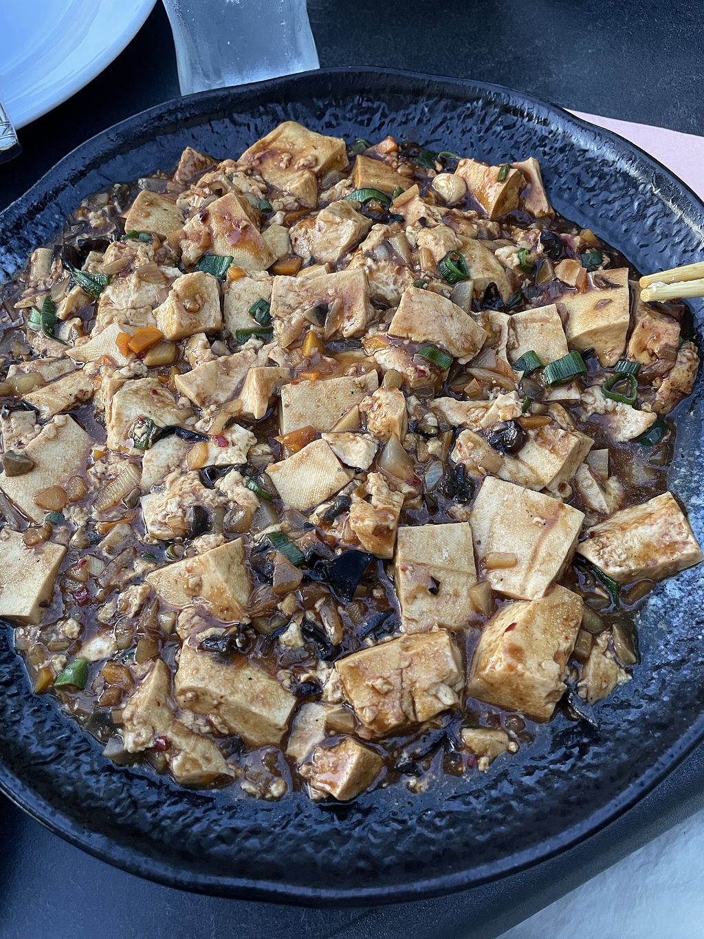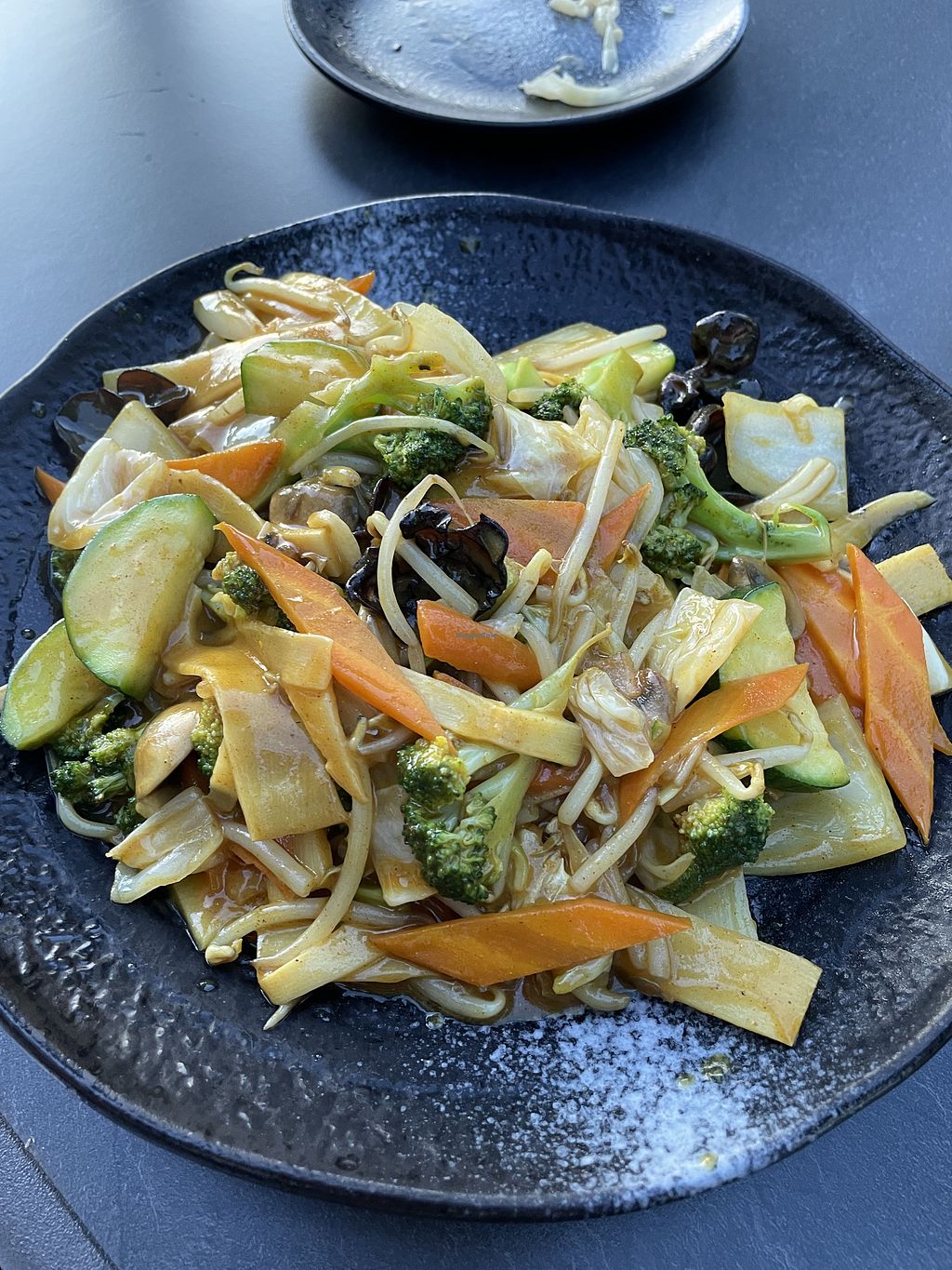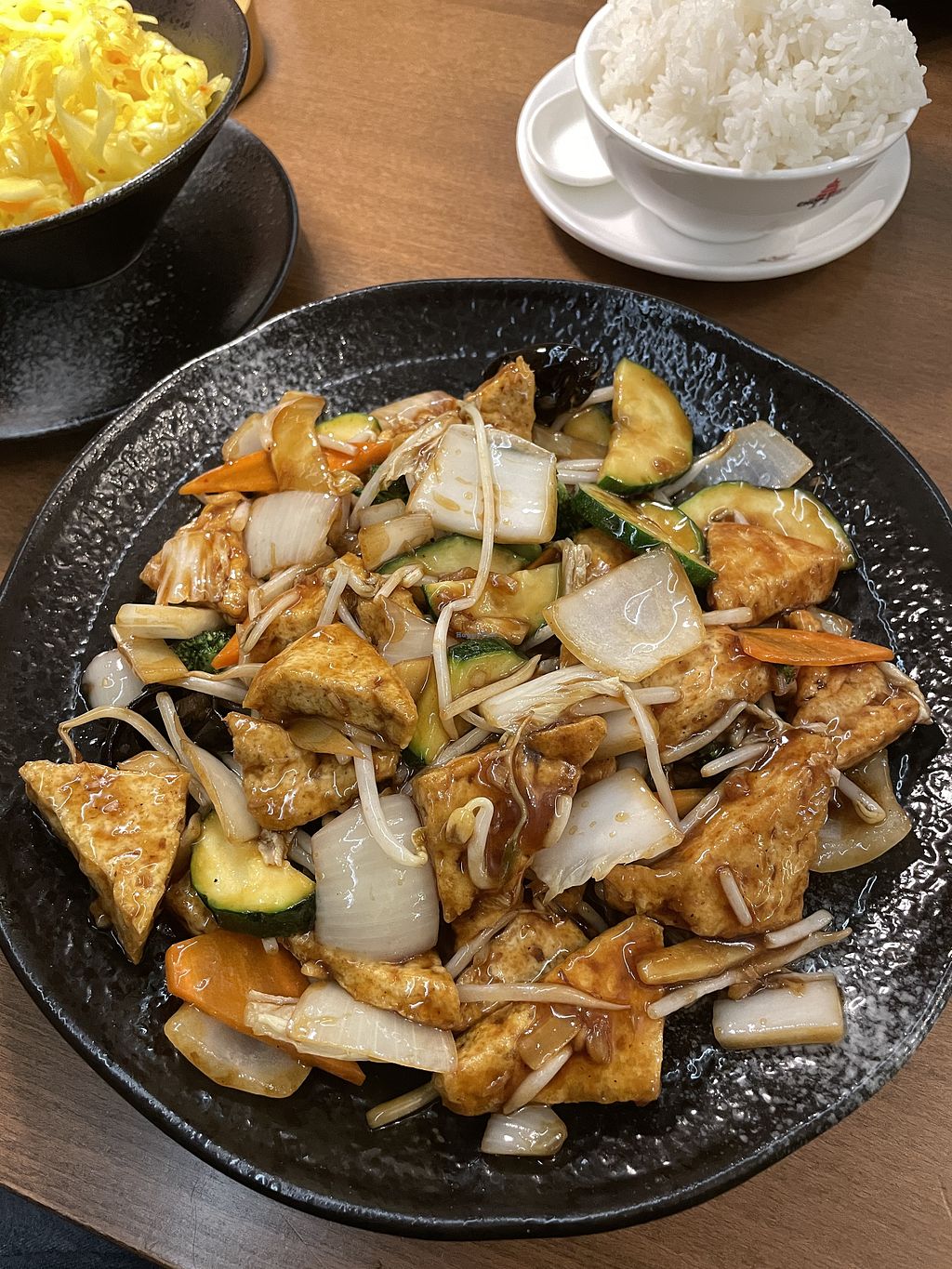 Serves meat, vegan options available. Restaurant offering clearly labeled vegan dishes like “tofu mit gemüse” (tofu with vegetables in wok), “gebratene brokkoli” (fried broccoli), and avocado maki (avocado sushi rolls). Open Tue-Sun 11:30-14:30, 17:00-22:00. Closed Mon.