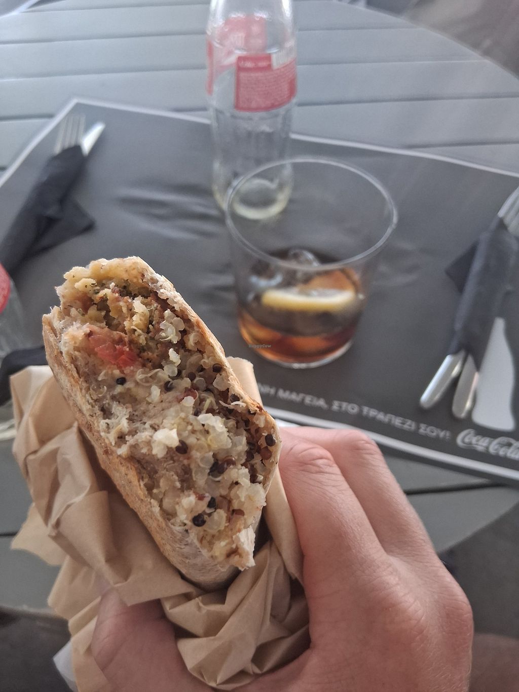 I had the falafel wrap - hoping it would be served fast as we were awaiting our ferry, but took them some time to grill and had to urge the servicd to get it at least as a take-out. The wrap was actually okay and filling, with quinoa in it, but little veggies. They have also vegan burger on the menu.