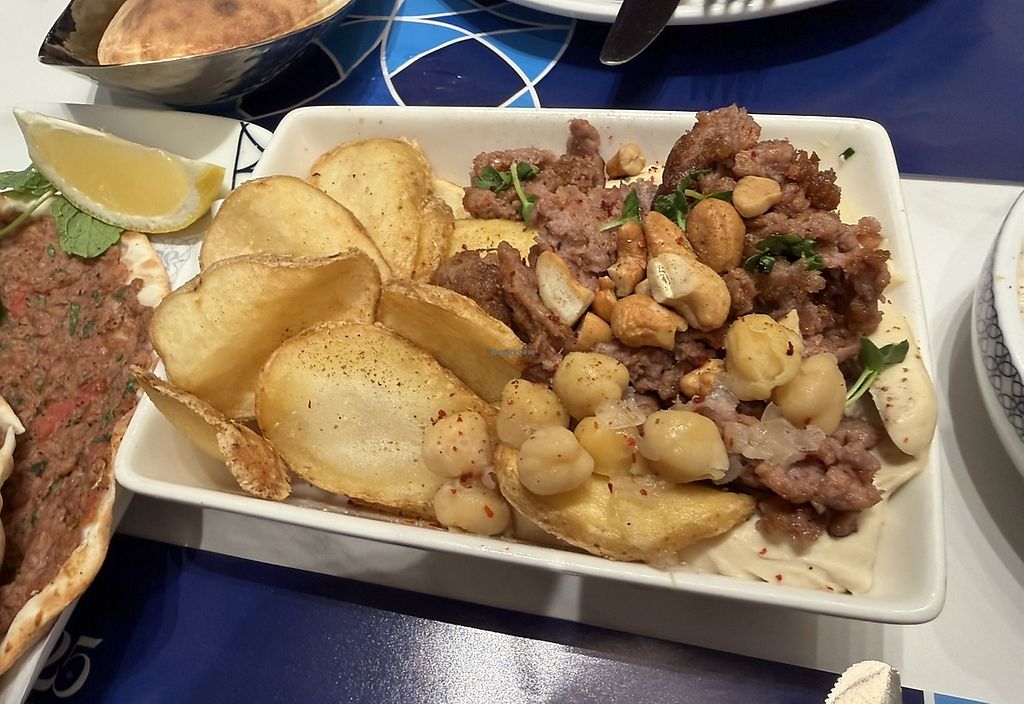 Hummus with meat and fries