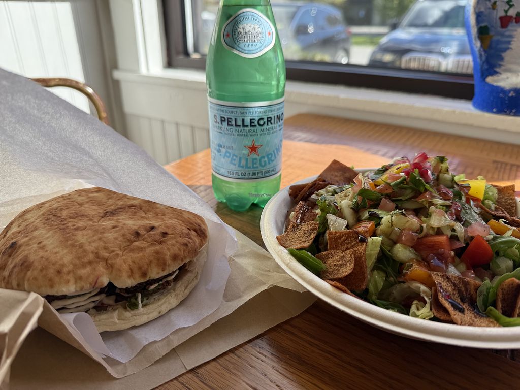 This place was pretty good — it’s nice to have an option in the area where there aren’t too many vegan choices. The falafel pita was flavorful and filling, and the salad was fresh and well-seasoned. The genie lamp outside was a fun and unique touch that made the place stand out!