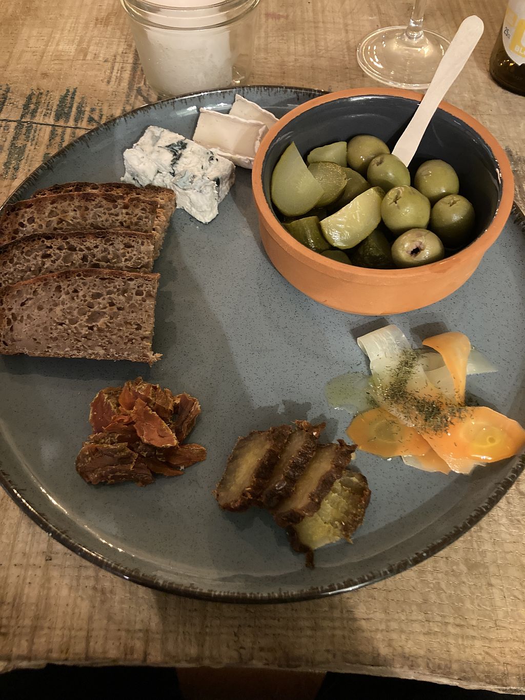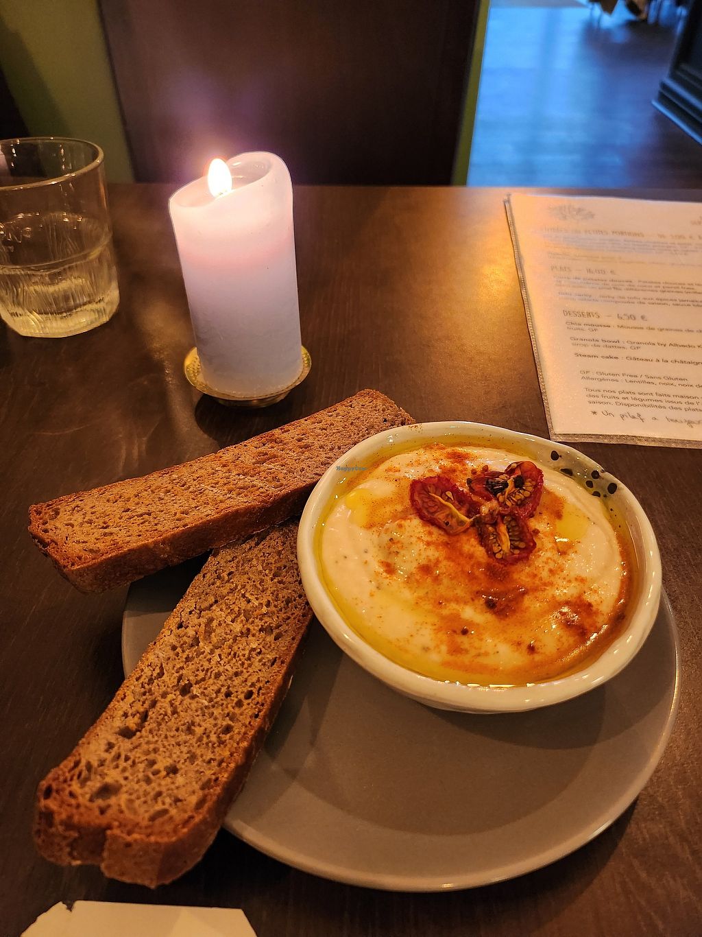 Très bel accueil. J’ai pris la planche fauxmage/charcuterie en plat principal, et le Chia Mousse en dessert.