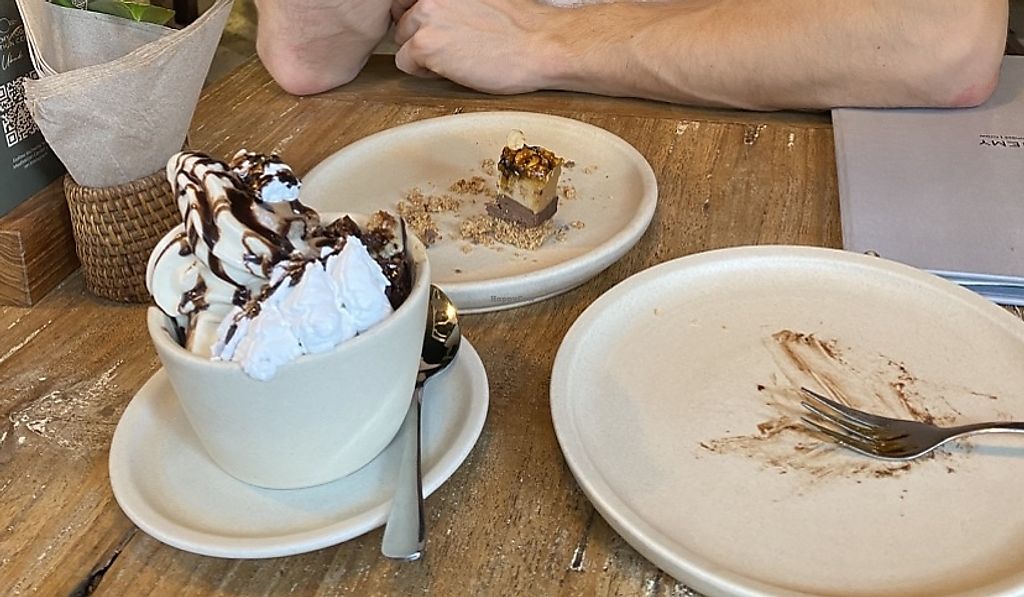 We were there for a late breakfast. The Cafe was already full and to the Lunch time a big group of people joined 🥴