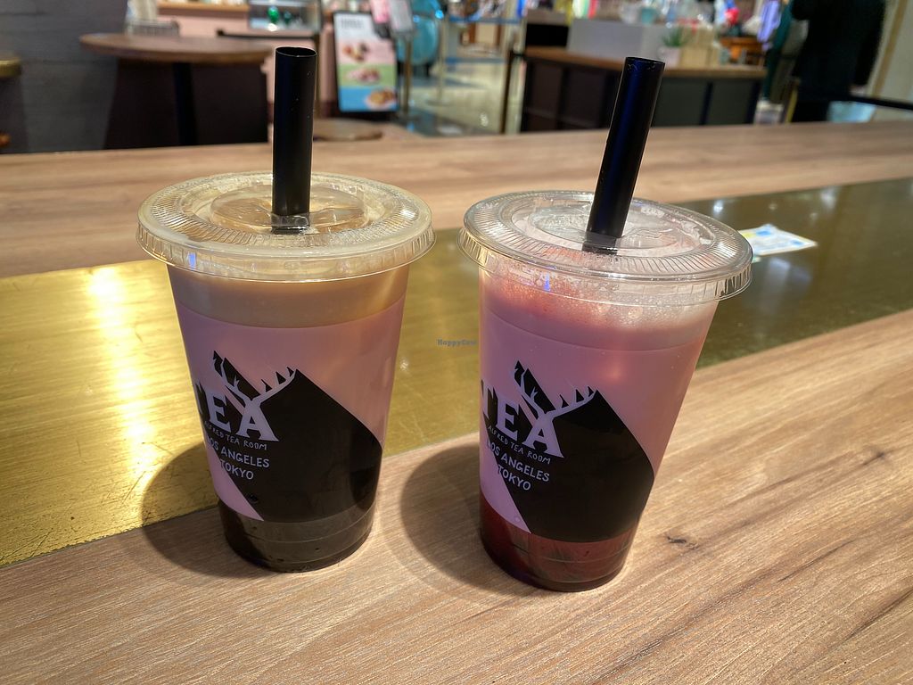 I visit this place a couple of times whilst I was in Tokyo because it's super cute and vegan milk bubble teas are very hard to find. I tried the matcha almond milk bubble tea and the rose milk bubble tea and they were both great. If you don't speak Japanese it may be worth Google translating "dairy allergy" to show the staff so that they make you a fresh tea rather than using anything pre-made as the word vegan isn't widely understood. That said the vegan dessert options are labelled and the strawberry shortcake style cake was delicious. None of the pita sandwiches or salads are vegan.